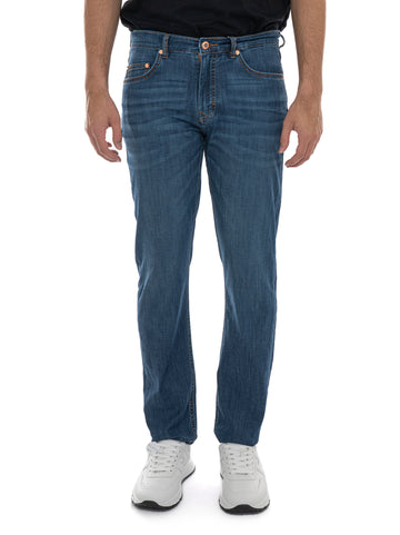Jeans 5 tasche Fay 5t leggero, impunture in contrasto, frange sul fondo, elasticizzato, composizione: 63%...