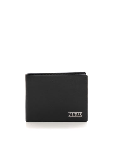 Portafoglio, fantasia logata, scomparti portacarte, scomparto banconote, composizione: 100% poliuretano, linea: GUESS.Misure: 12X9X1.5.
