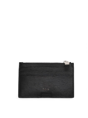 Portafoglio con zip BOSS : LUMINARY-6CC, logo in acciaio cromato, pelle lavorata, scomparti portacarte, composizione:...