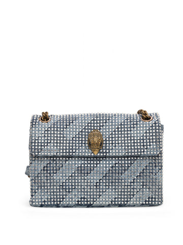 Borsa in pelle piccola Kurt Geiger Kensington, bicolore, applicazioni strass, chiusura con patta e bottone...
