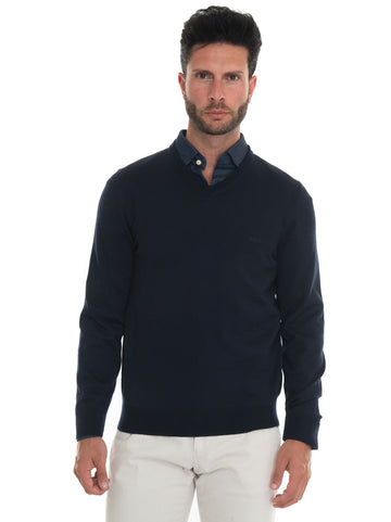 Pullover collo a V, tinta unita, linguetta con logo, vestibilità regular, composizione: 100% lana, linea:...