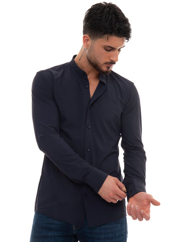 Camicia casual, collo italiano, tessuto leggero, effetto denim, tinta unita, vestibilità regular, composizione: 66% cotone,...