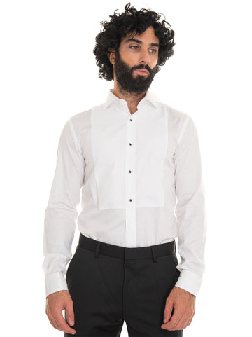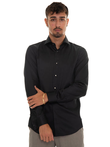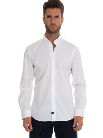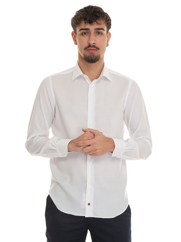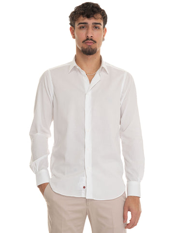Camicia classica da uomo, collo francese, tessuto operato, schiena con due pinces, linguetta con logo,...