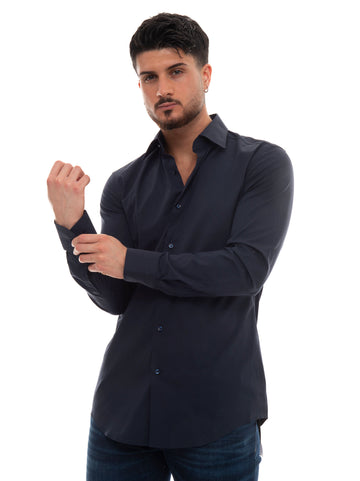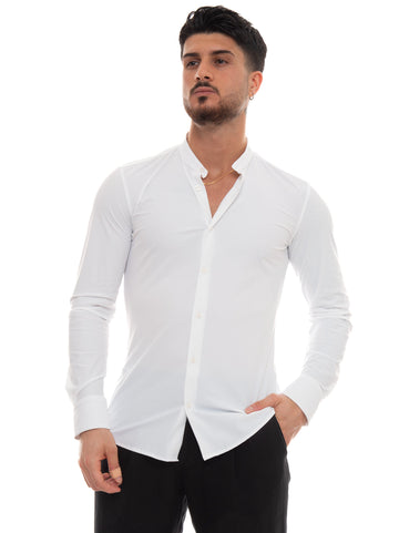 Camicia classica da uomo, collo classico italiano, schiena con due pinces, tessuto stretch, tinta unita,...