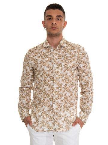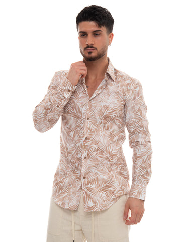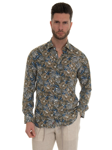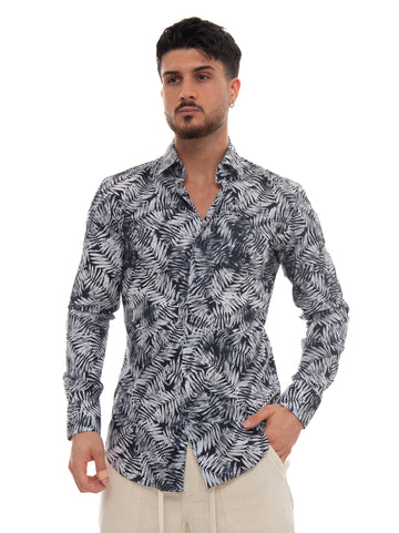 Camicia casual, collo classico italiano, fantasia foglie, pochette in abbinato, schiena con due pinces, vestibilità...