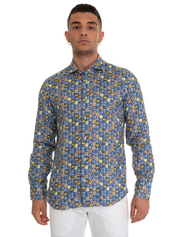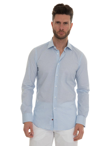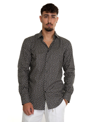 Camicia casual, collo italiano, chiusura bottoni, fantasia geometrica, vestibilità slim, composizione: 100% cotone, linea: CANALI.