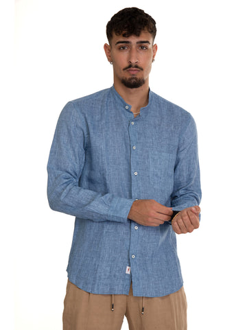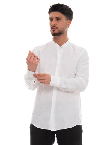 Camicia in lino, collo guru, tinta unita, vestibilità slim, composizione: 100% lino, linea: VINCENZO DE...