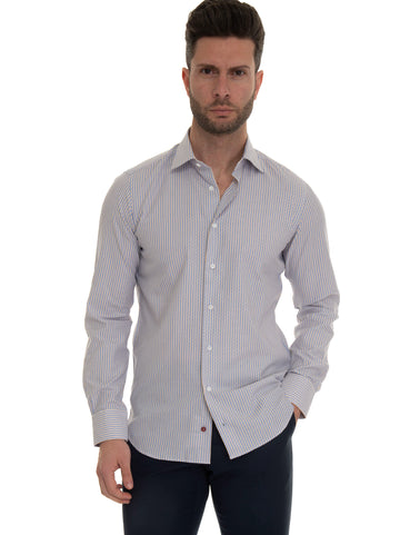 Camicia casual, collo classico italiano, fantasia, pochette in abbinato, schiena con due pinces, vestibilità dressed,...