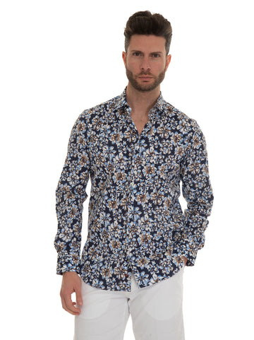 Camicia casual, collo classico italiano, fantasia fiori, pochette in abbinato, schiena con due pinces, vestibilità...