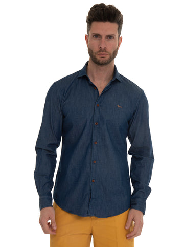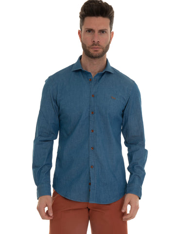 Camicia casual, collo francese, logo sul petto, tessuto chambrè, bottoni a contrasto, vestibilità narrow fit,...