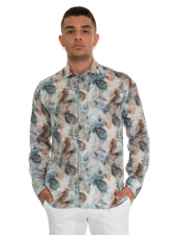 Camicia in lino, collo italiano, stampa fantasia, schiena con due pinces, vestibilità slim, composizione: 100%...