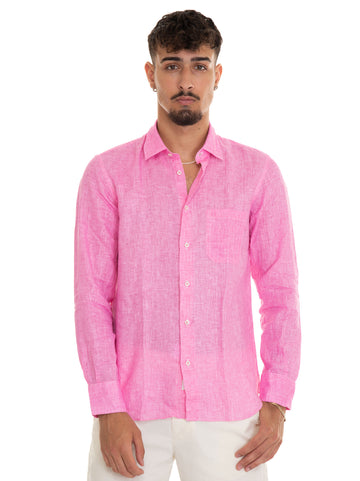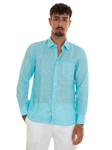 Camicia casual, collo morbido, vestibilità slim, composizione: 100% lino, linea: VINCENZO DE LAUZIERS.