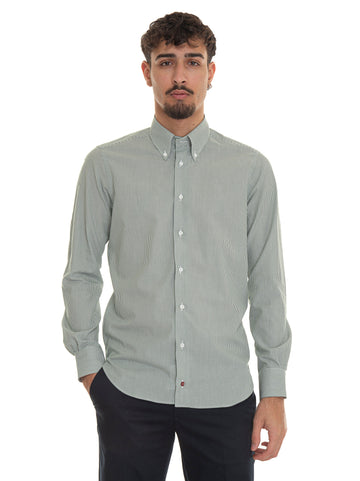 Camicia casual, collo button-down, fantasia riga pari, pochette in abbinato, schiena con due pinces, composizione:...
