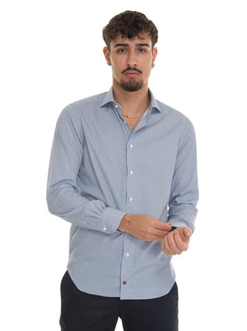 Camicia casual, collo classico italiano, fantasia geometrica, schiena con due pinces, pochette in abbinato, vestibilità...