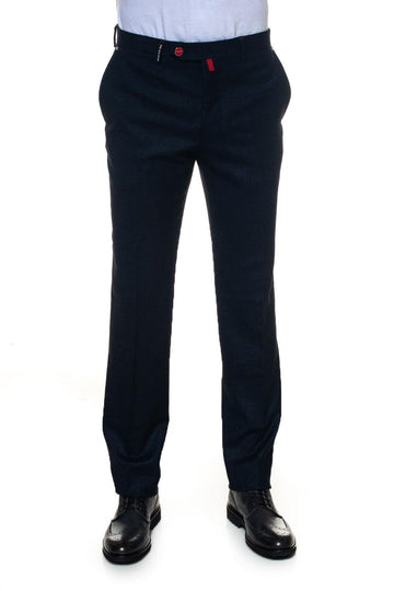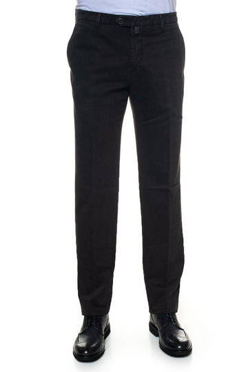 Pantalone classico, fantasia riga pari, salpa logata, impunture in contrasto, chiusura bottoni in acciaio logati,...