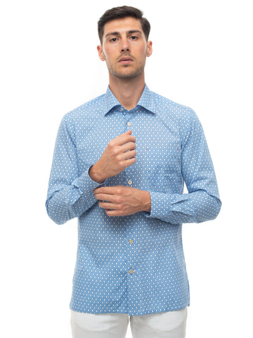 Camicia manica lunga, fantasia fiori, taschino sul petto, bottone madreperla, hand made, made in italy,...