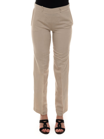 Pantalone classico, tasche laterali, vita alta, chiusura con bottone e zip a scomparsa, spacchetti laterali,...