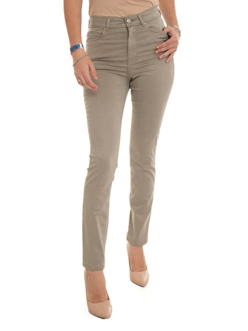 Pantalone 5 tasche, vita alta, gamba stretta, chiusura con bottone e zip a scomparsa, linguetta...