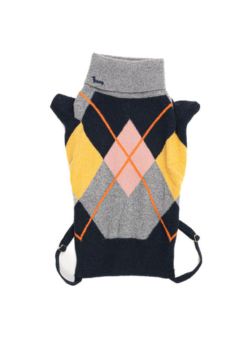 Dog sweater, diamond pattern, front logo, composition: 70% wool, 30% cashmere, line: HARMONT & BLAINE.