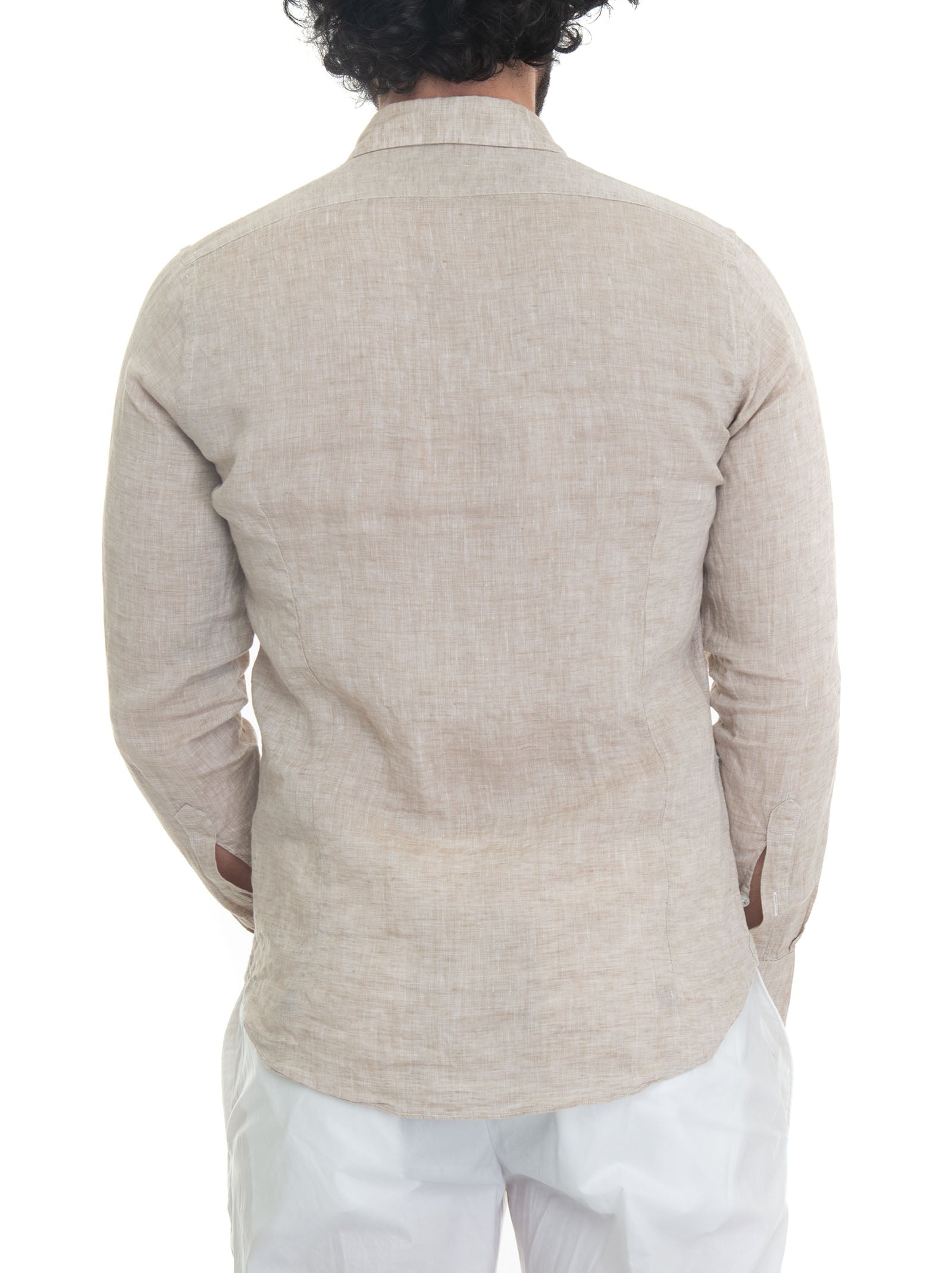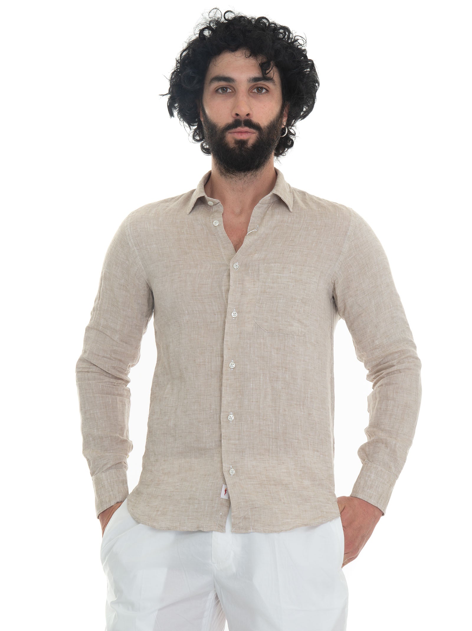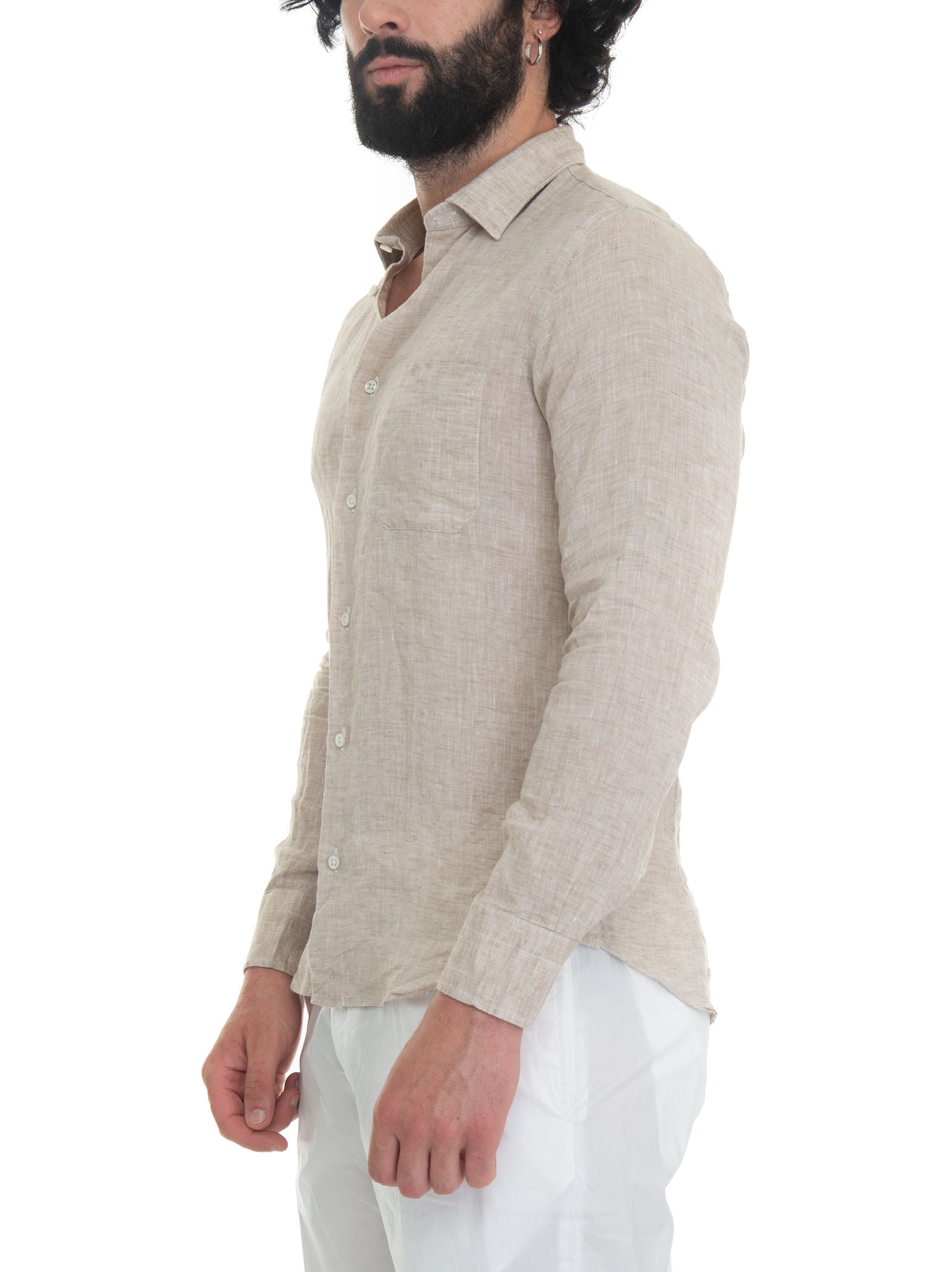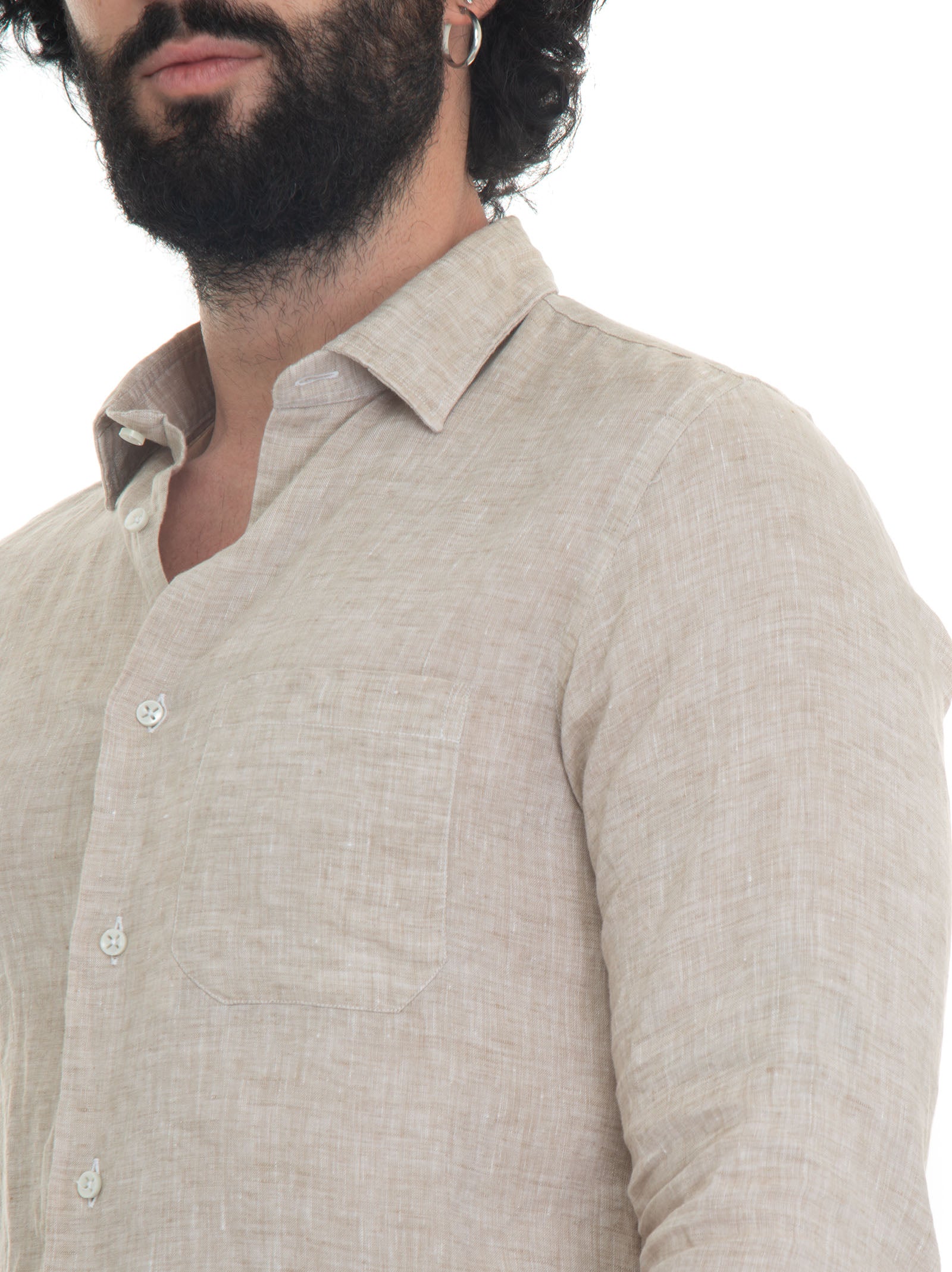 Casual shirt, Italian collar, pocket, solid color, slim fit, composition: 100% linen, line: VINCENZO DE LAUZIERS.