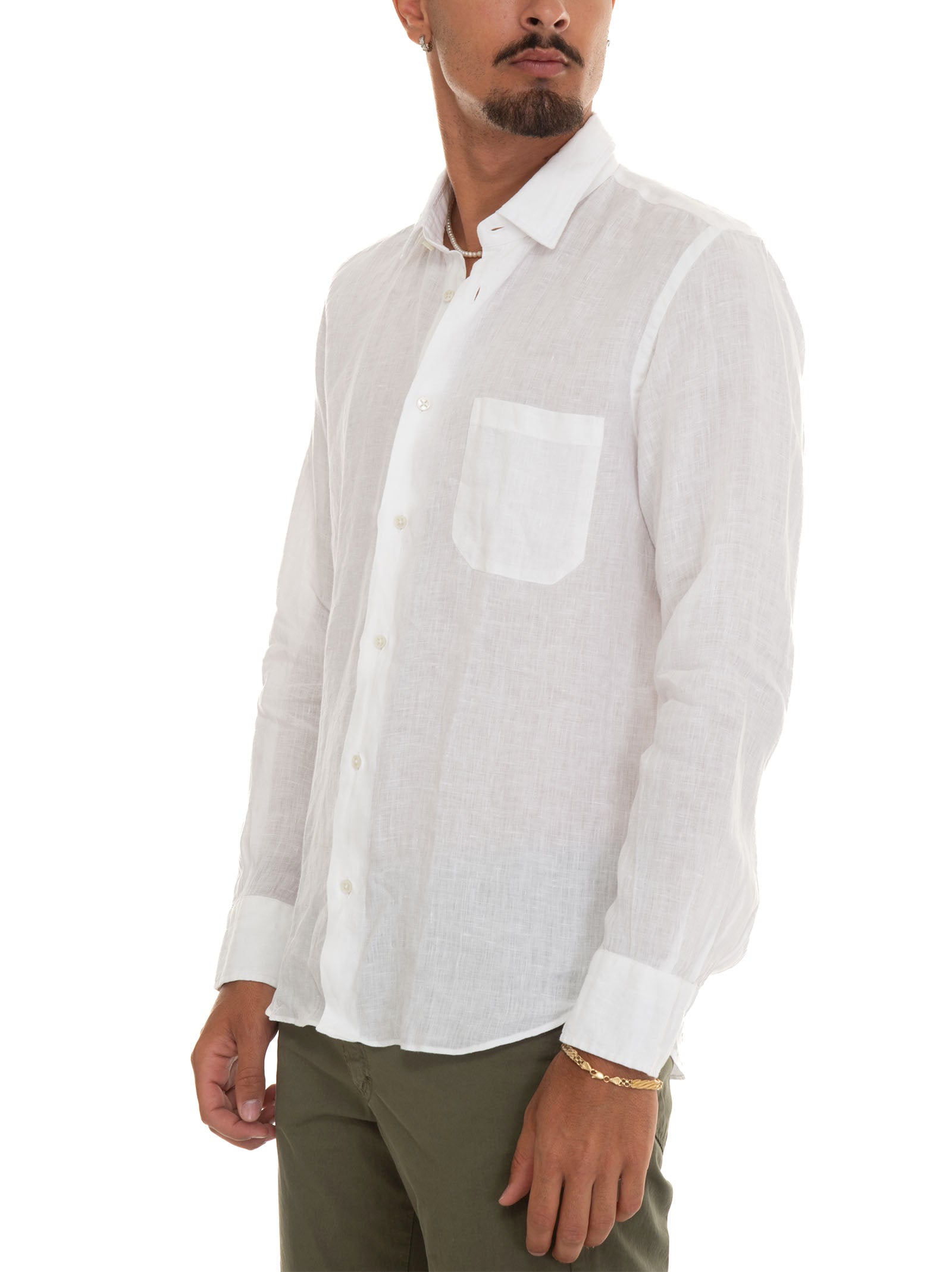 Casual shirt, soft collar, slim fit, composition: 100% linen, line: VINCENZO DE LAUZIERS.
