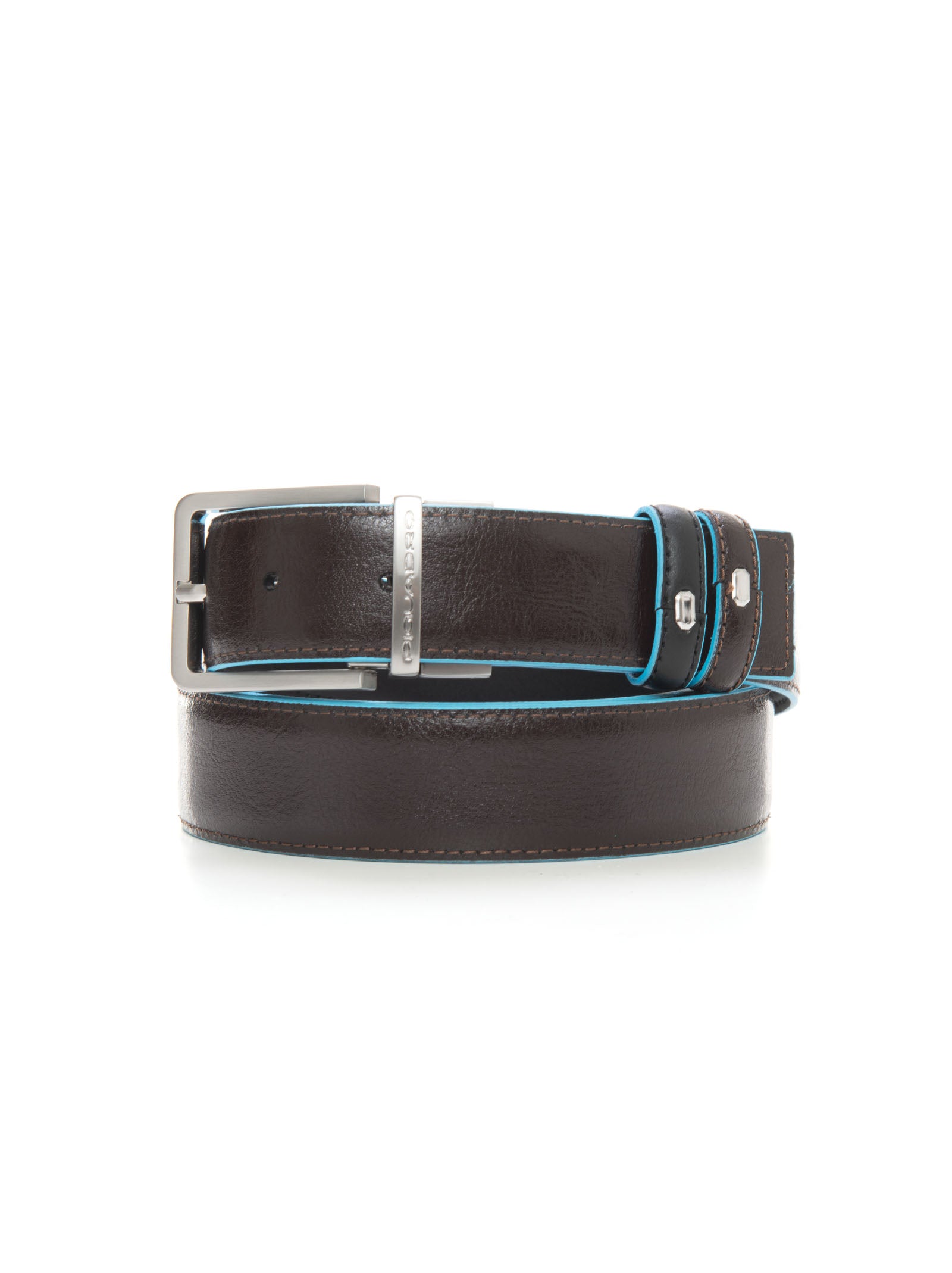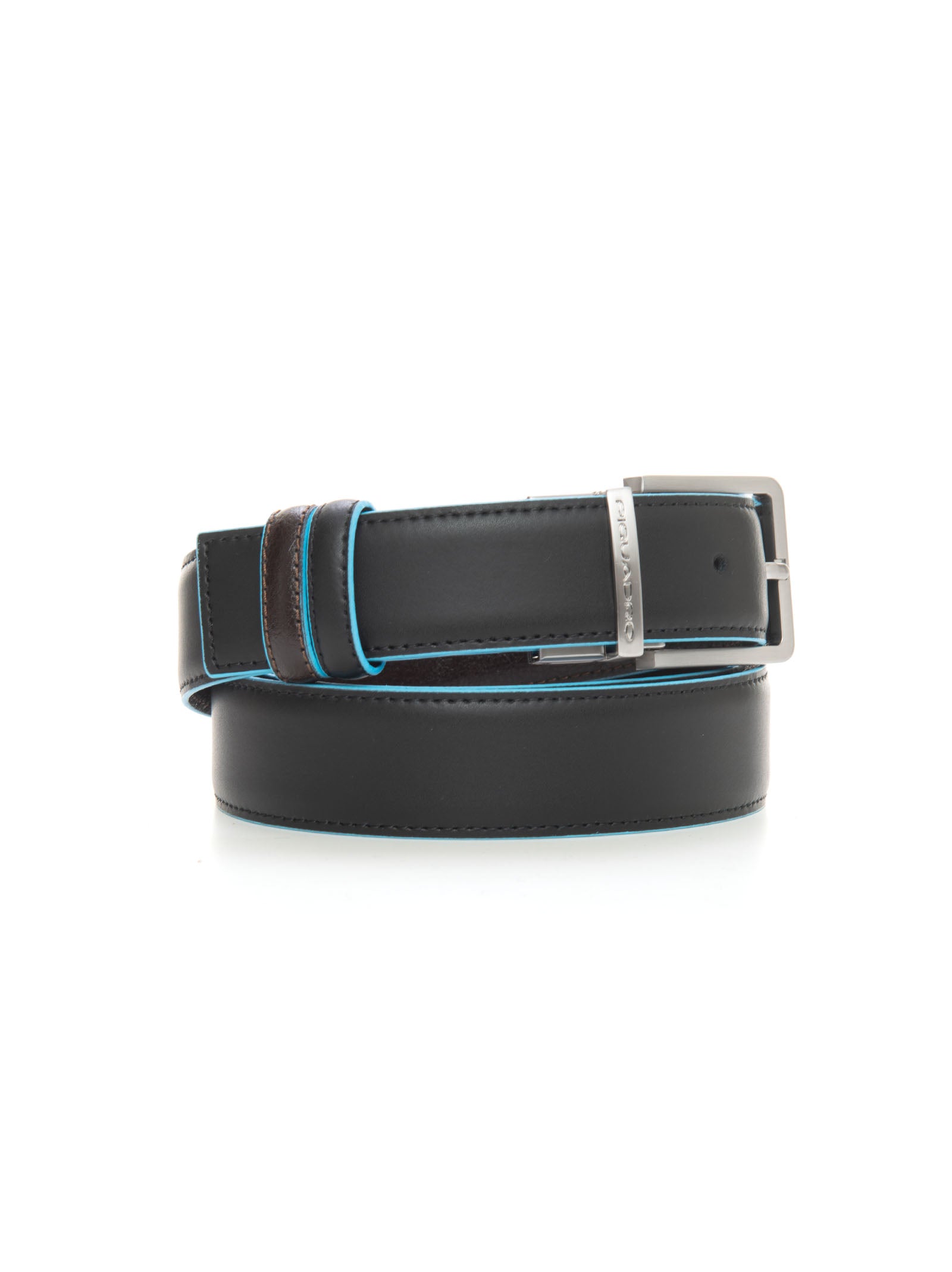 Reversible belt, logoed polished steel buckle, the length can be changed by cutting the belt, contrasting profiles, composition: leatherline: PIQUADRO.