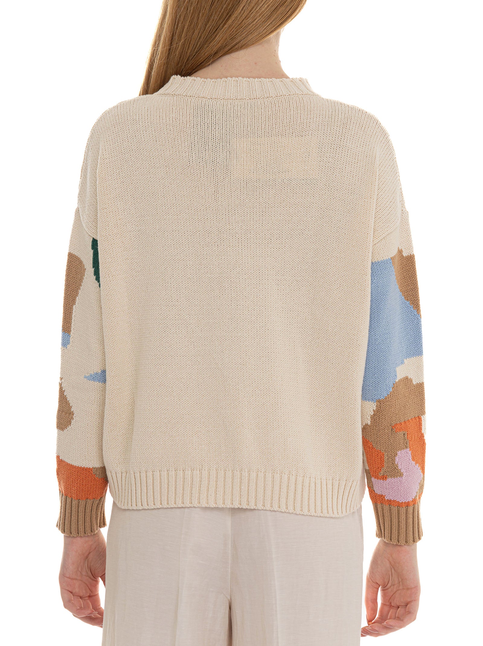 Weekend Max Mara Fabian crew neck sweater, dropped shoulders, floral pattern, cuffs and hem in English jersey, boxy model, composition: 60% cotton, 40% acrylic, line: WEEKEND MAX MARA.