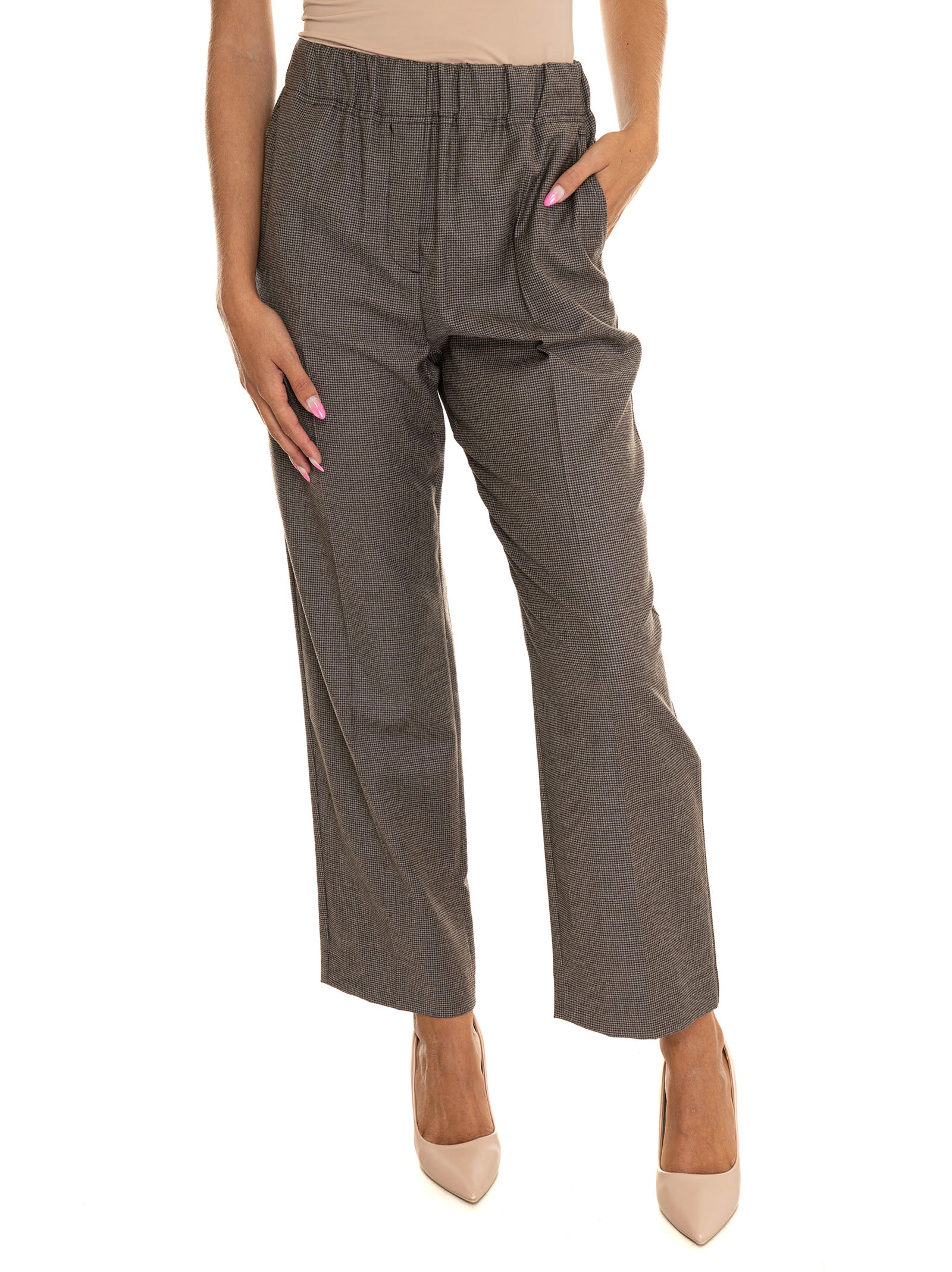 Weekend Max Mara Hateley soft trousers, flannel fabric, elastic waist, America pocket, micro pattern, composition: 99% wool, 1% elastane, line: WEEKEND MAX MARA.