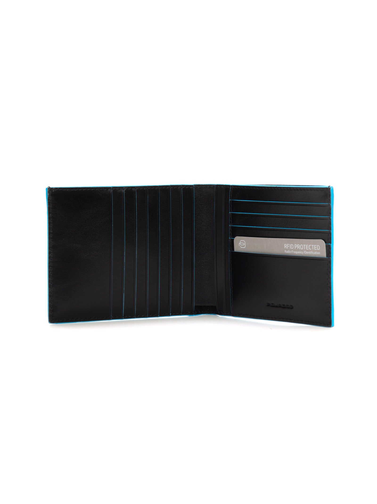 Wallet, card holder compartments, banknote compartment, contrasting profiles, chromed steel logo, shiny effect, composition: 100% leather, line: PIQUADRO.