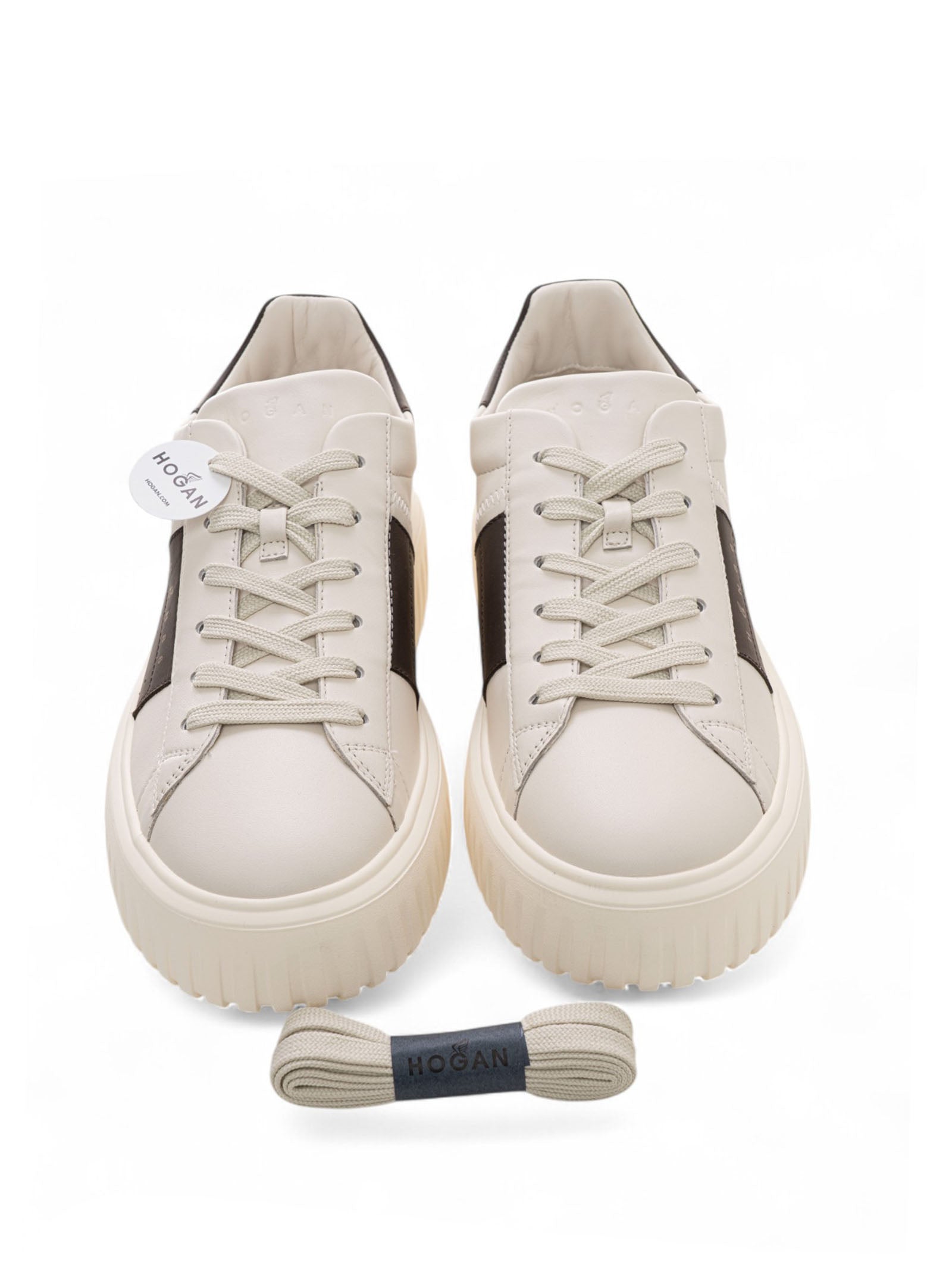 Hogan H stripes high-top sneakers, smooth leather, side logo, contrasting color profiles, memory foam technology insole, double laces, composition: 100% leather, line: HOGAN.