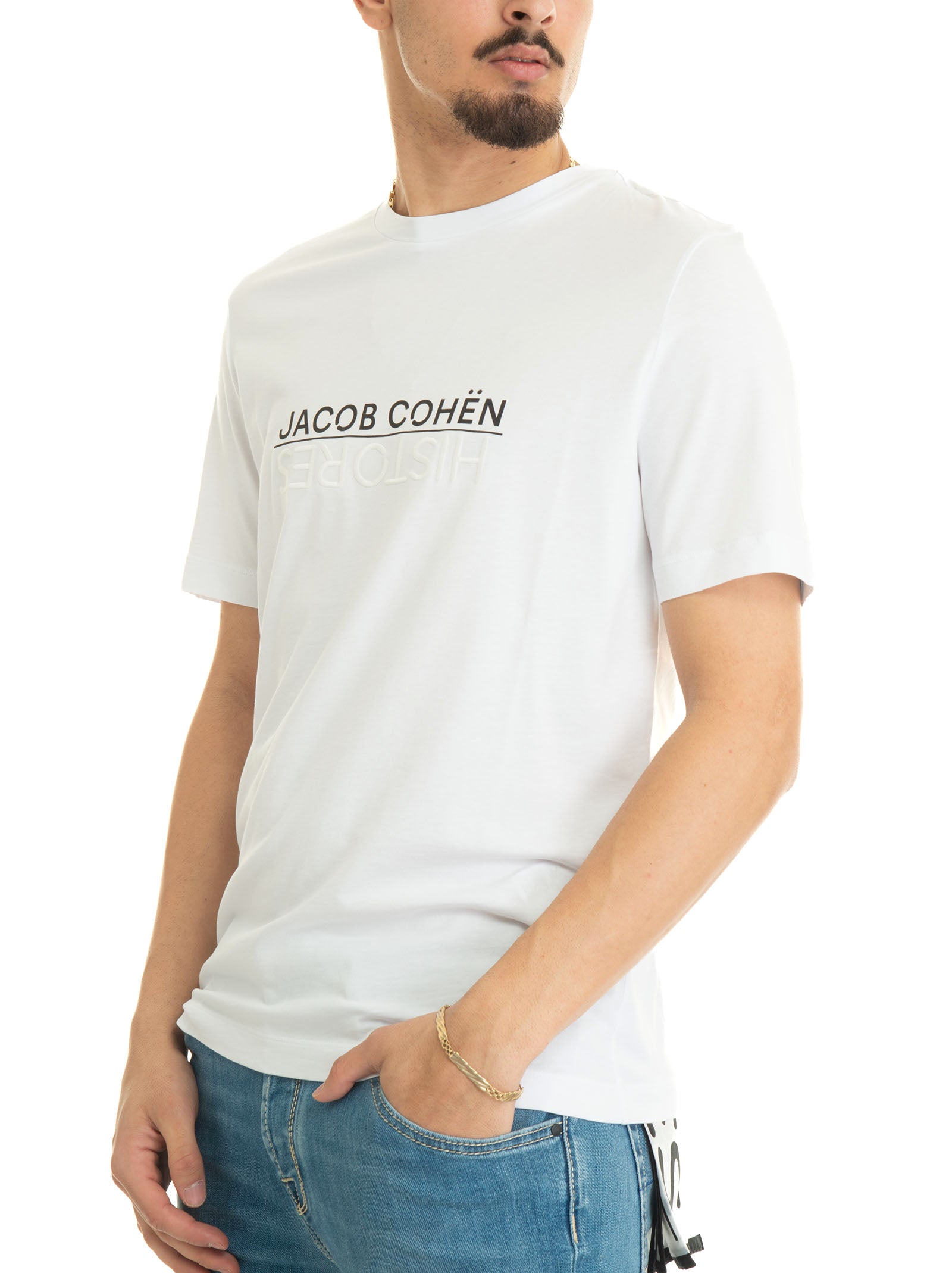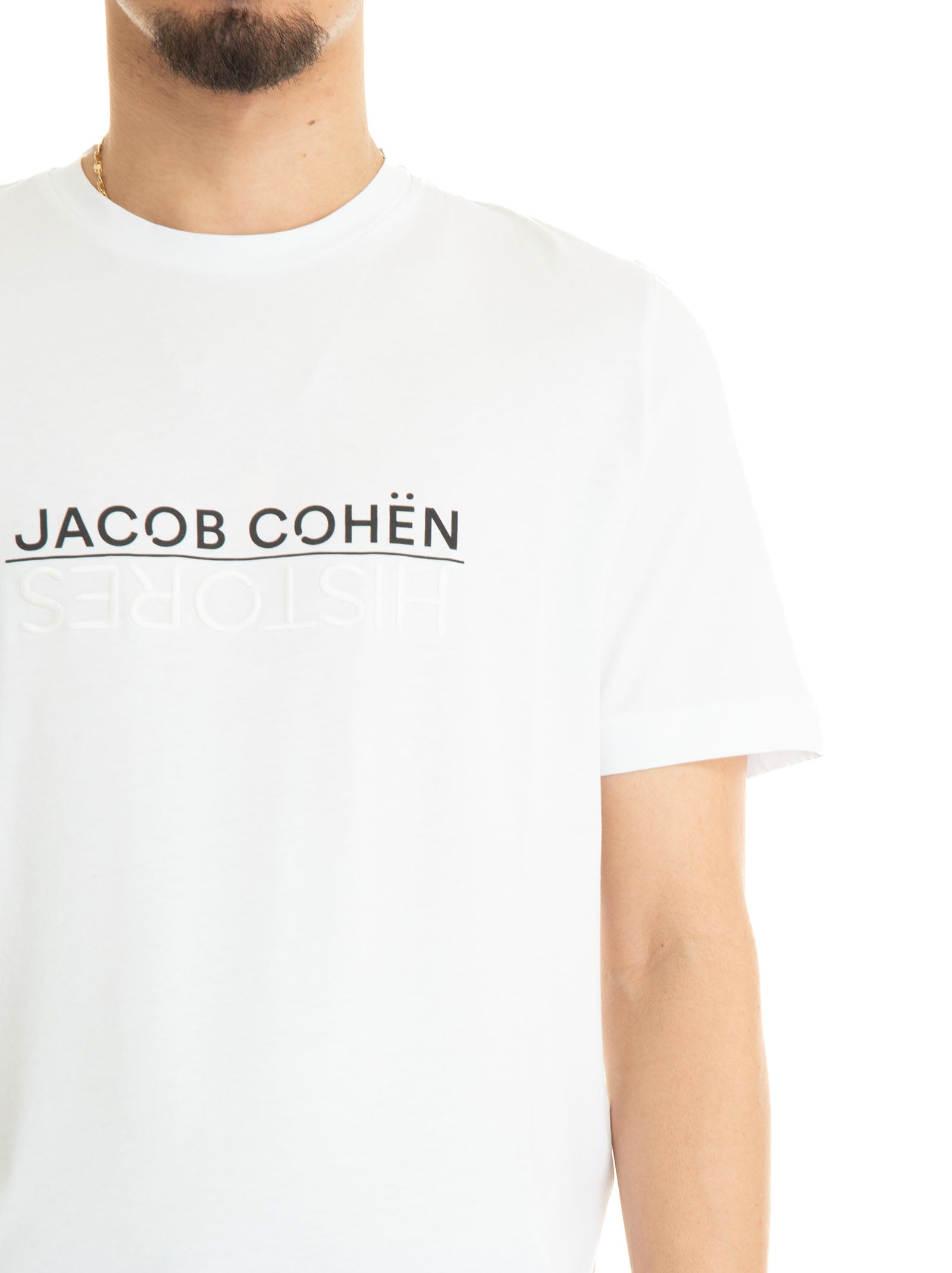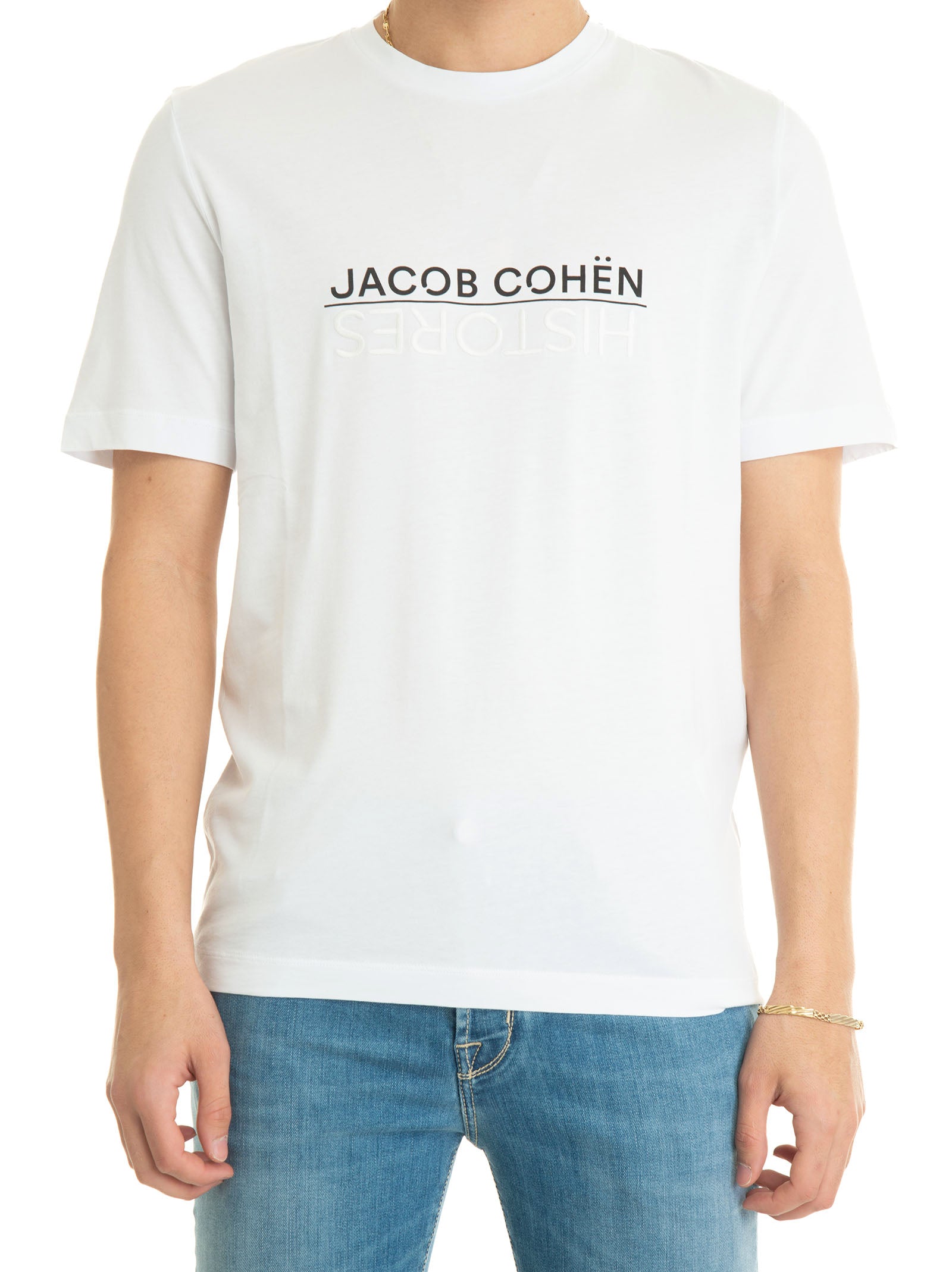White Jacob Cohen x Histores Man half sleeve crew neck t-shirt