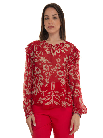 Women's shirt, floral print, balloon sleeves, ruffles on the sleeves, tongue with logo, composition: 73%...
