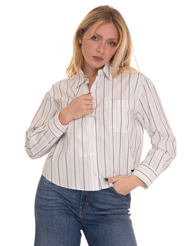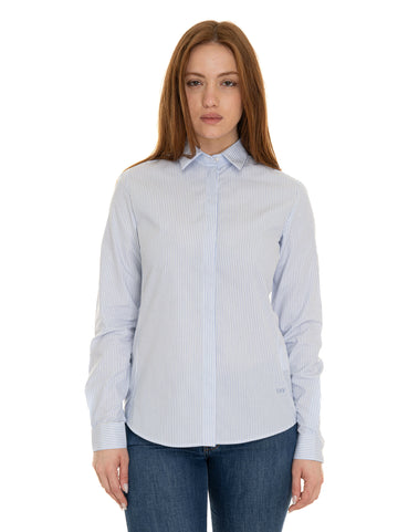 Classic women's shirt, striped pattern, long sleeves, concealed button fastening, logo sewn on the bottom,...