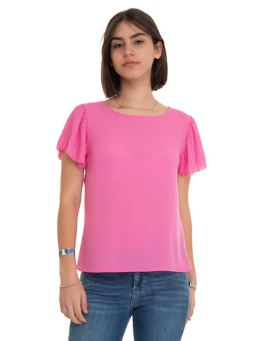 Short sleeve blouse, round neck, back neckline, logo tab, soft, regular fit, composition: 100% polyester,...