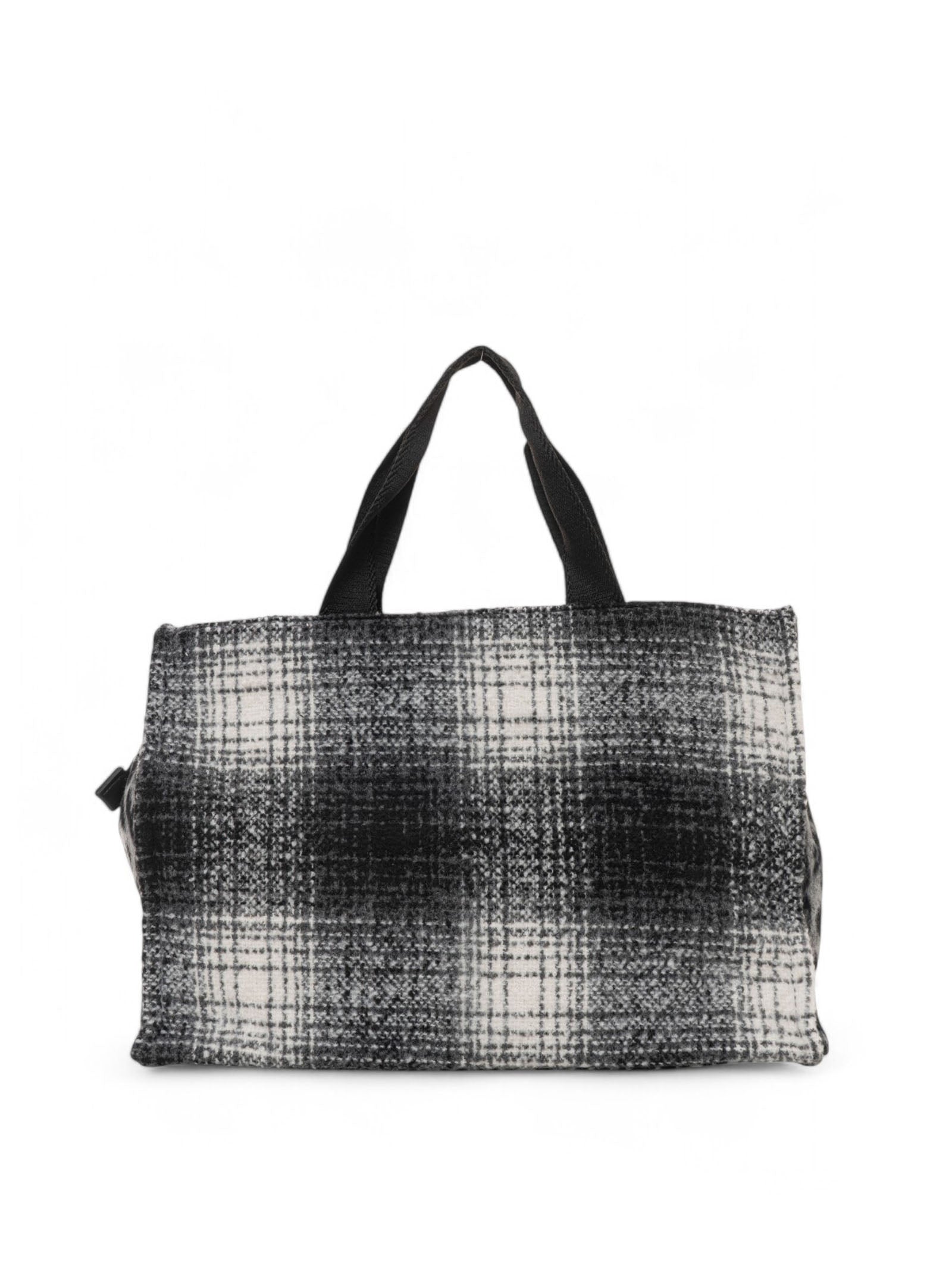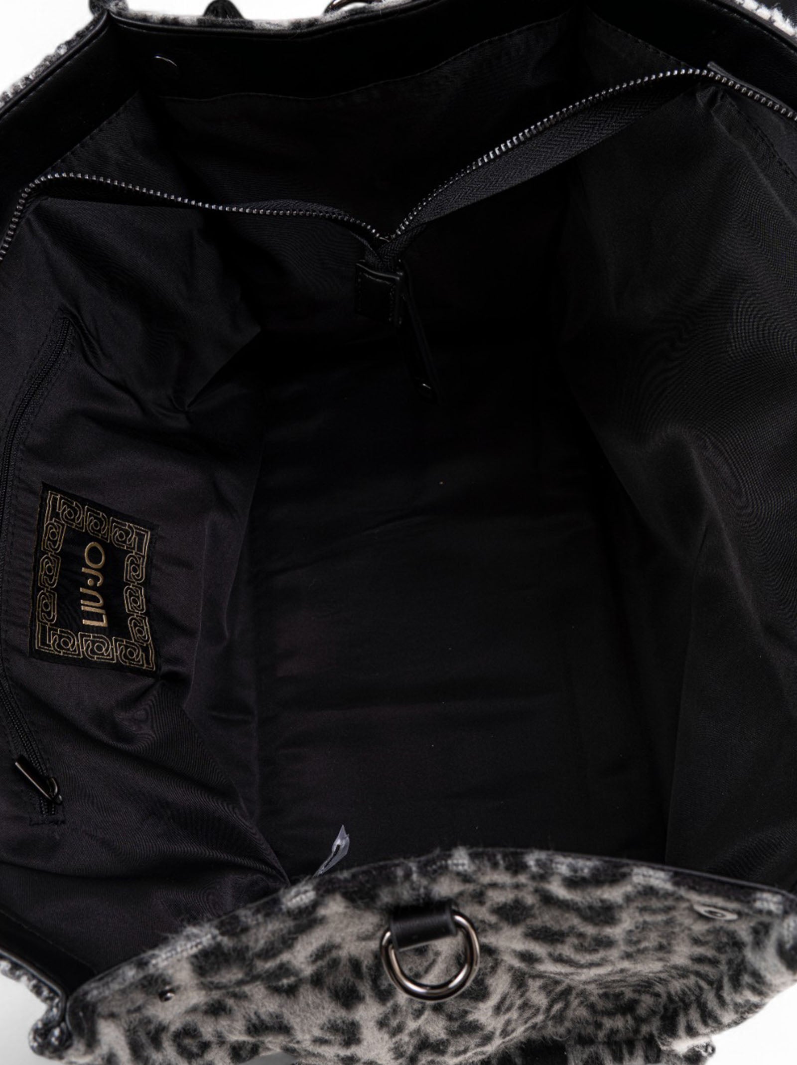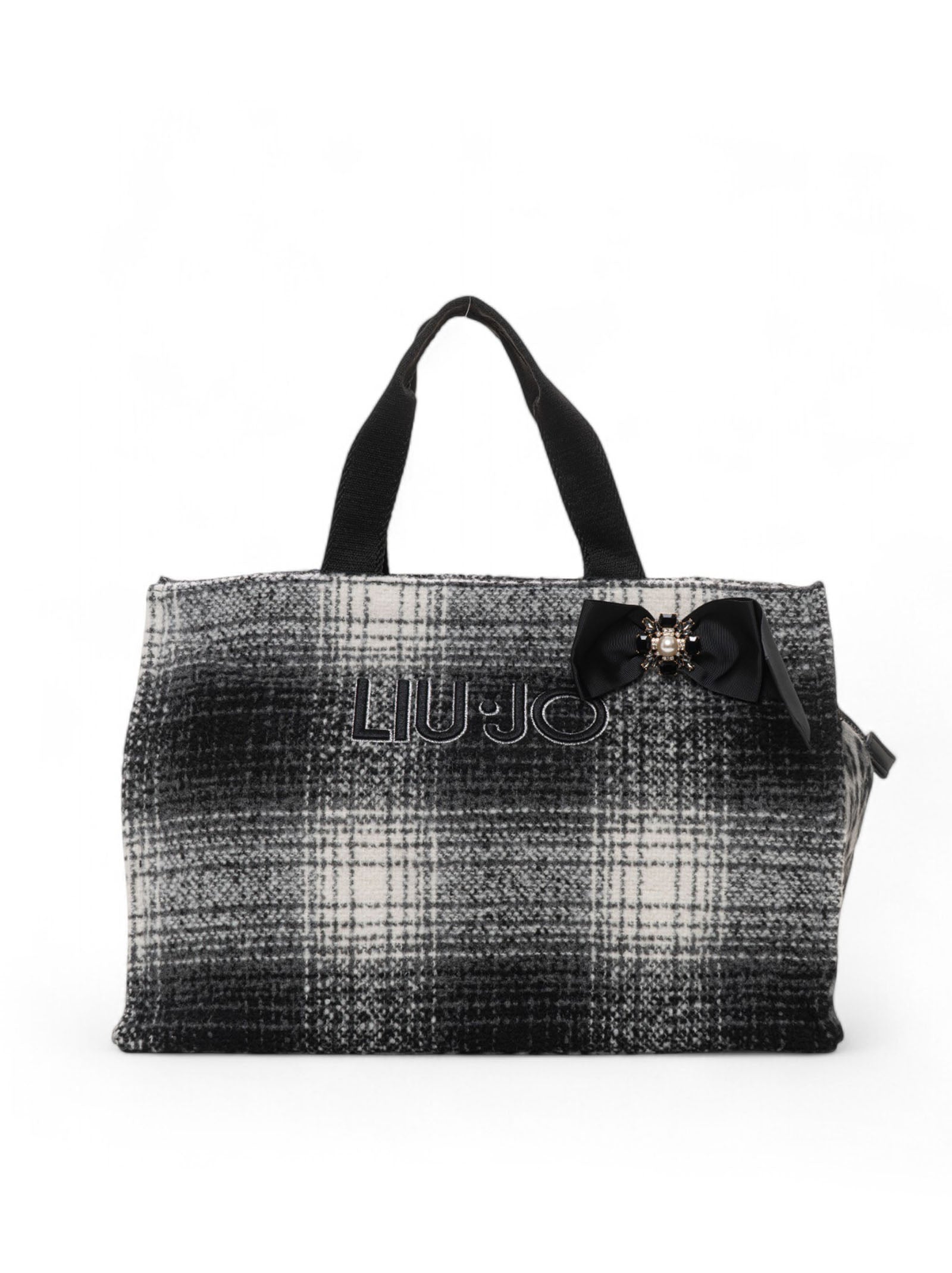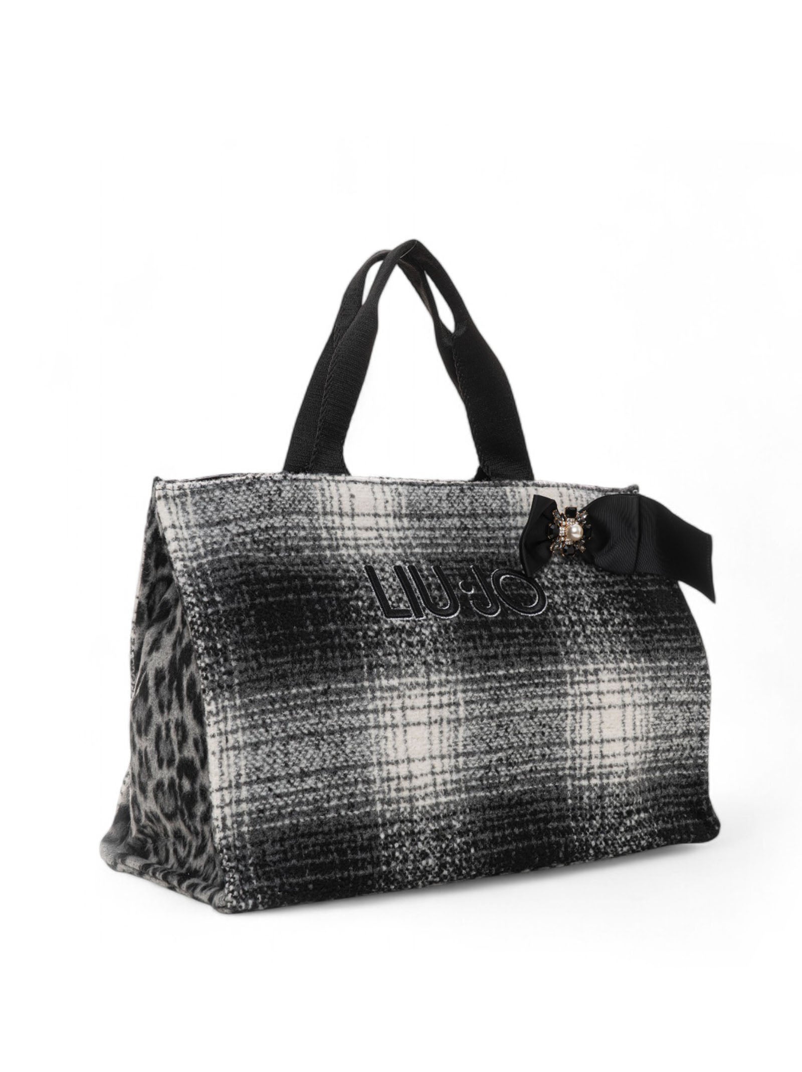 Large bag, two handles, removable and adjustable shoulder strap, front logo, patterned print, zip closure, internal pocket, composition: 100% polyester, line: LIU JO.