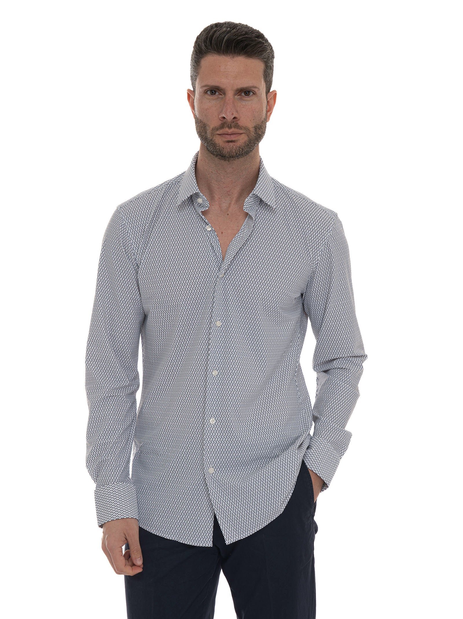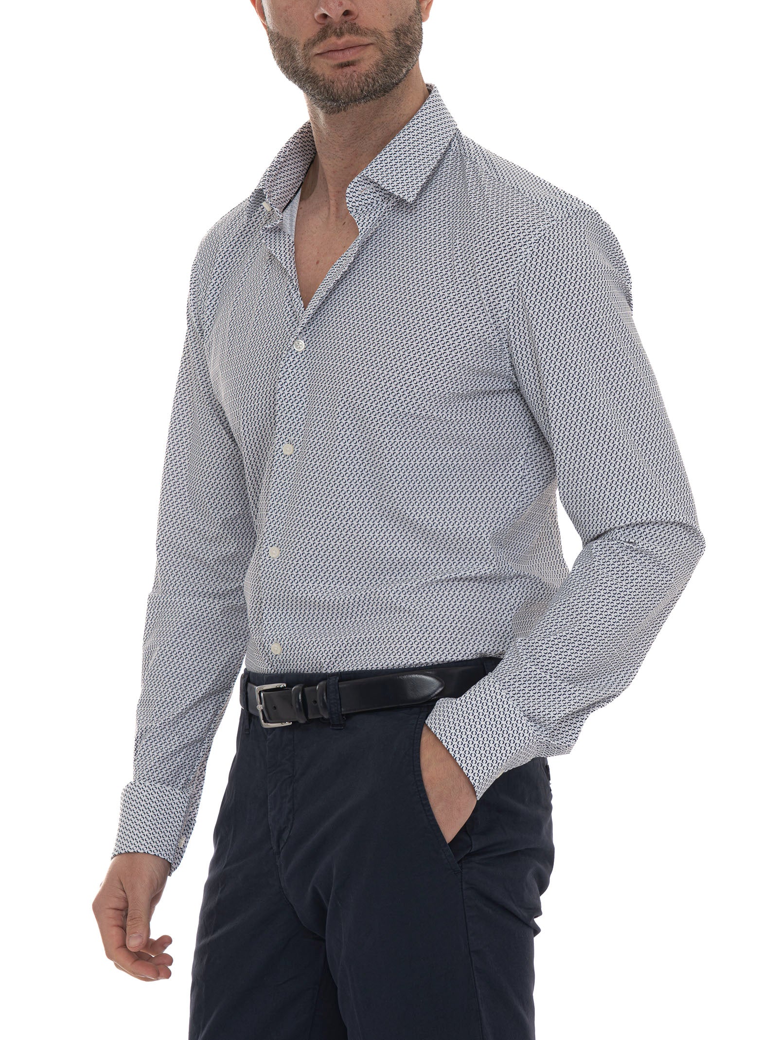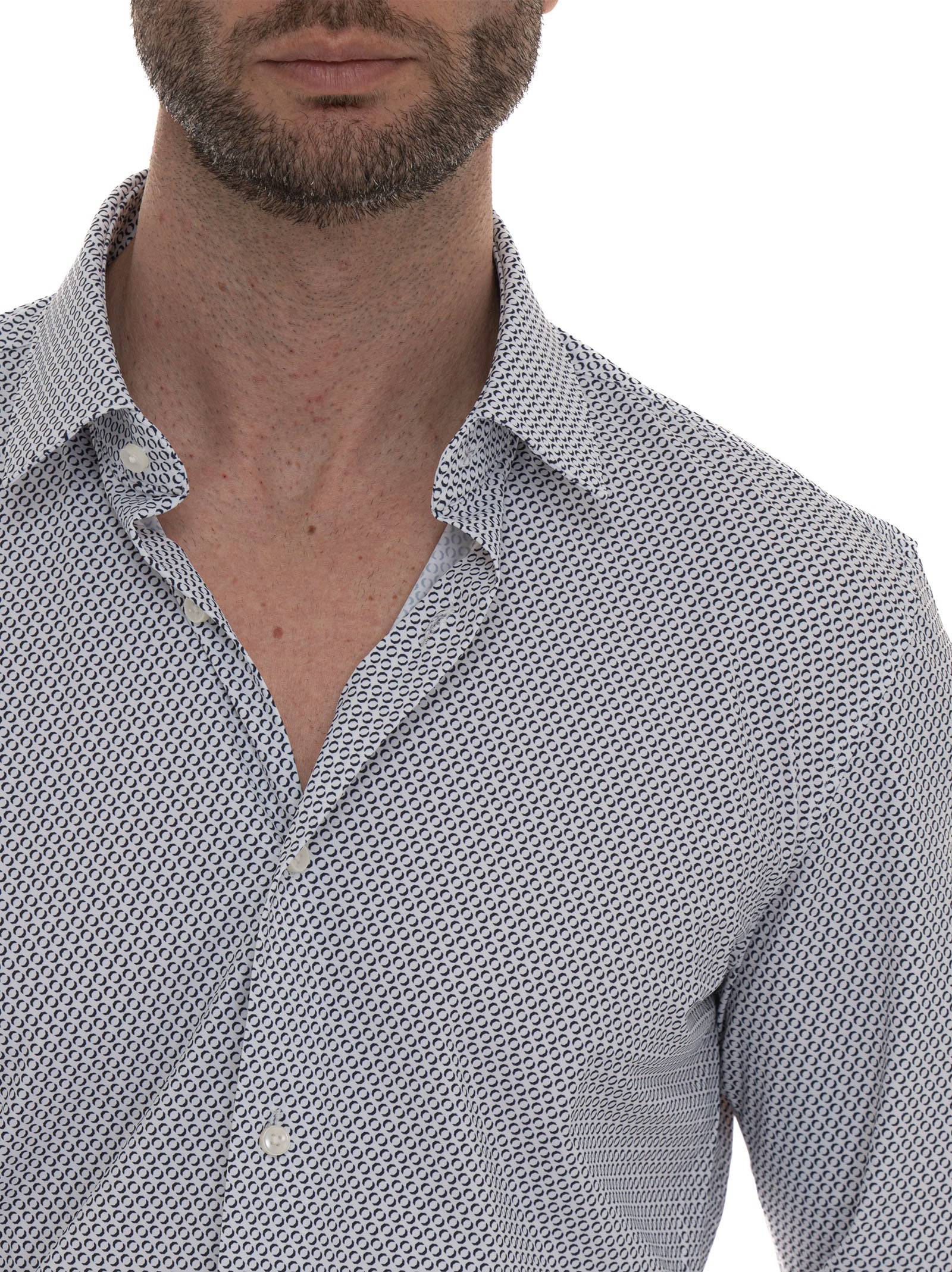 BOSS P-HANK-S-KENT men's classic shirt, classic Italian collar, back with two pleats, geometric pattern, performance stretch, non-iron, composition: 76% polyamide, 24% elastane, line: BOSS.