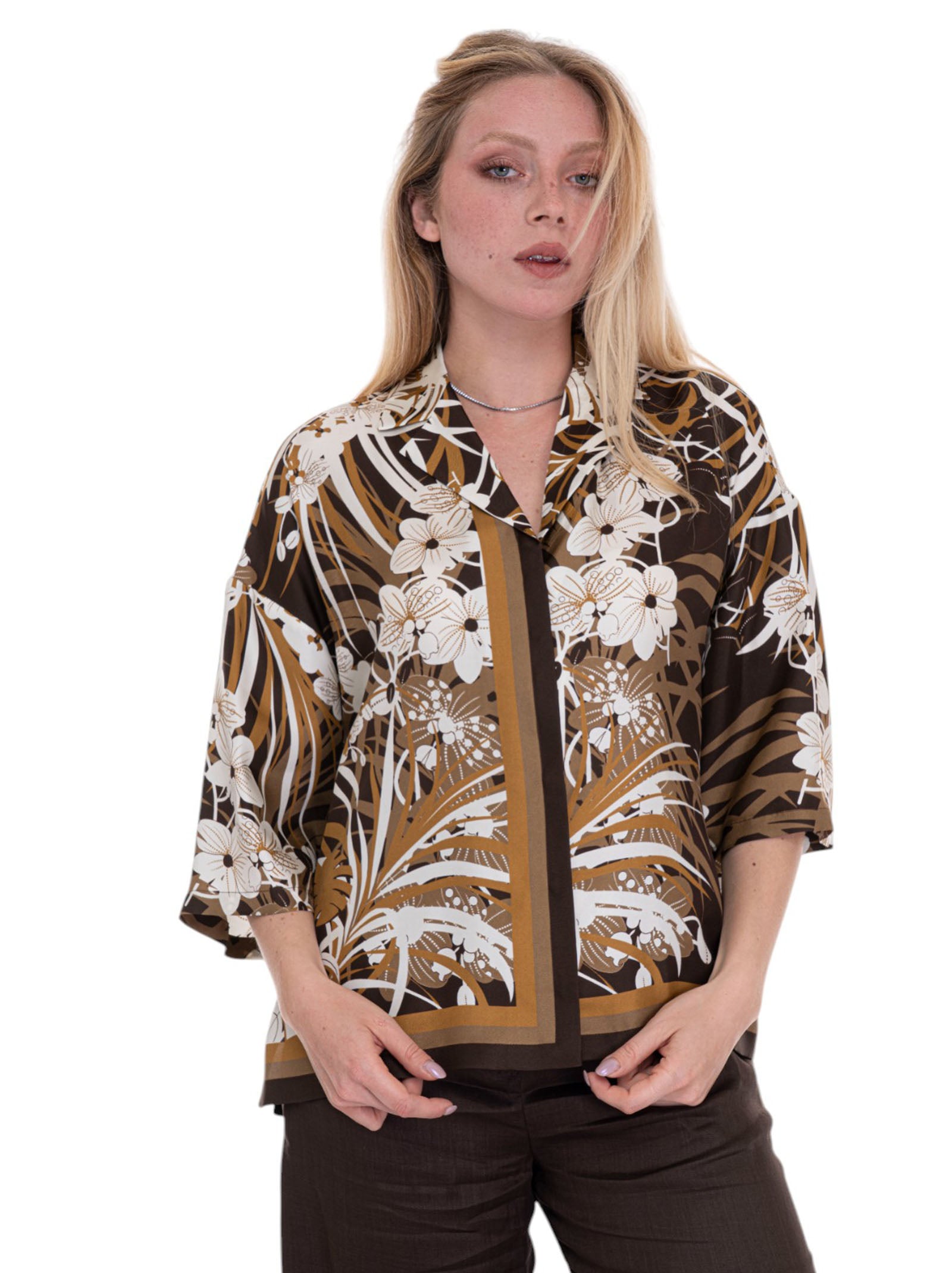 Max Mara Studio Darsena silk shirt, patterned, short sleeves, side slits, composition: 100% silk, line: MAX MARA STUDIO.