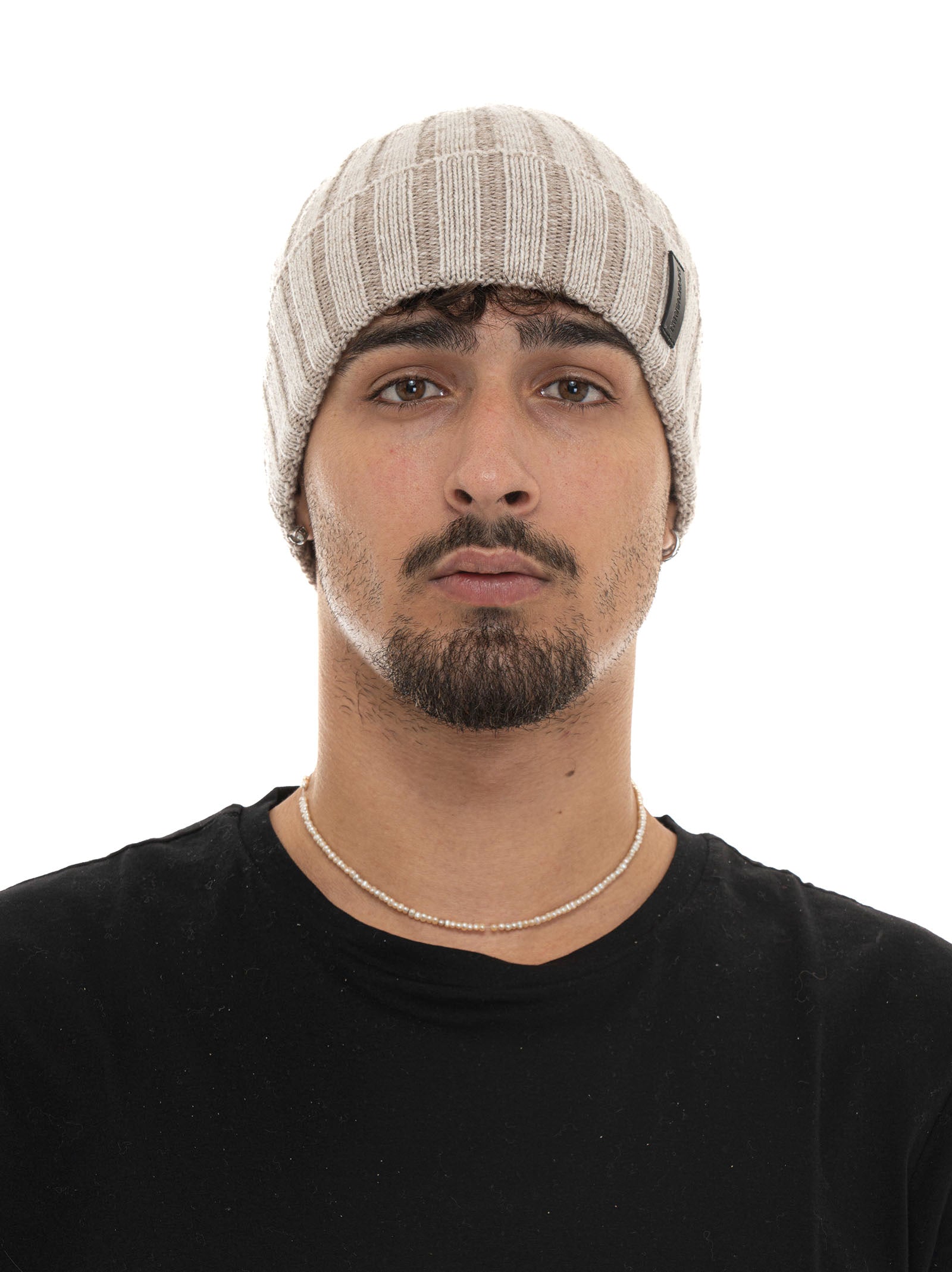 Cappello a costa inglese, logo laterale, taglia unica, composizione: 70% lana, 30% cachemire, linea: EMPORIO ARMANI.