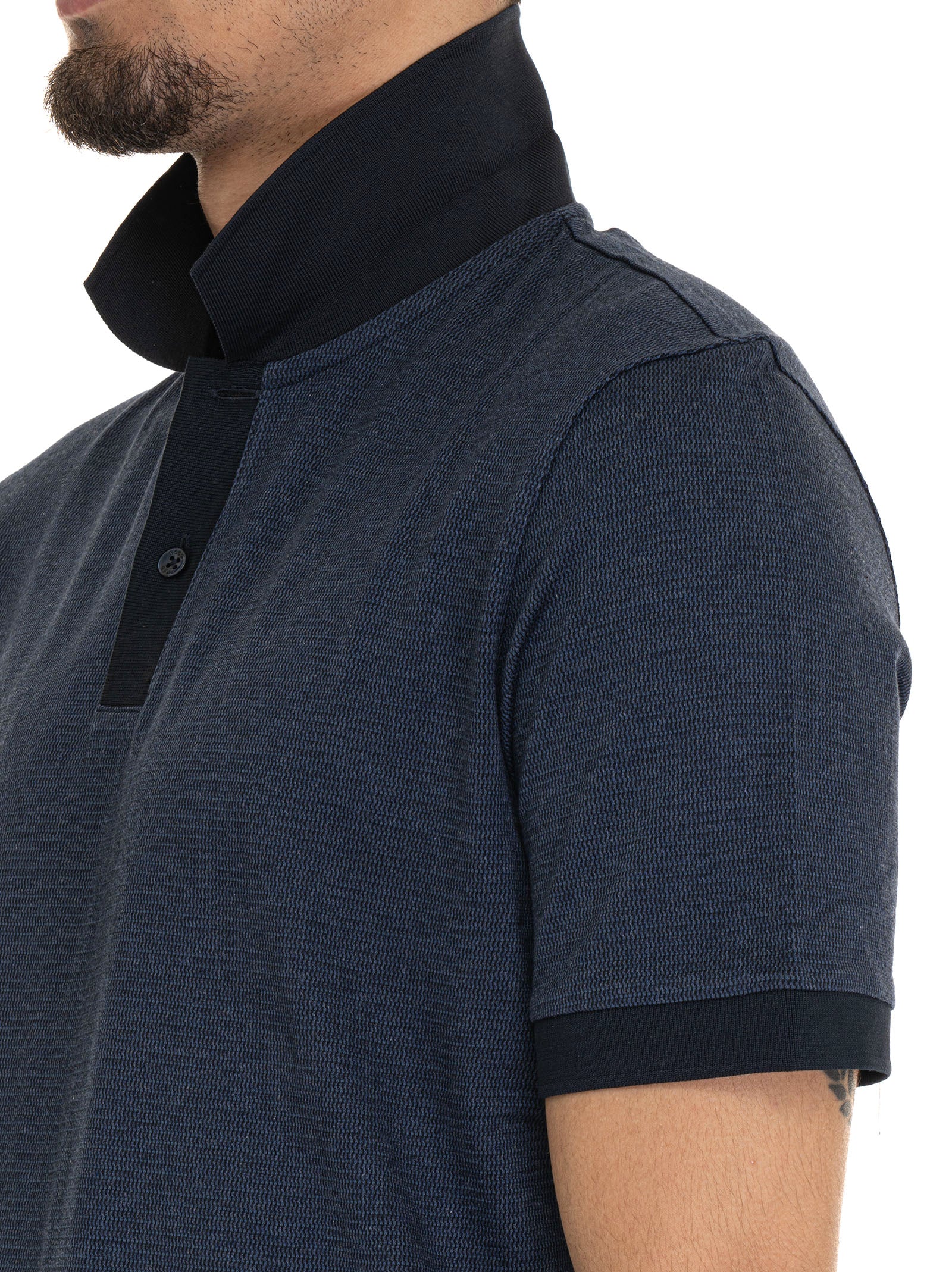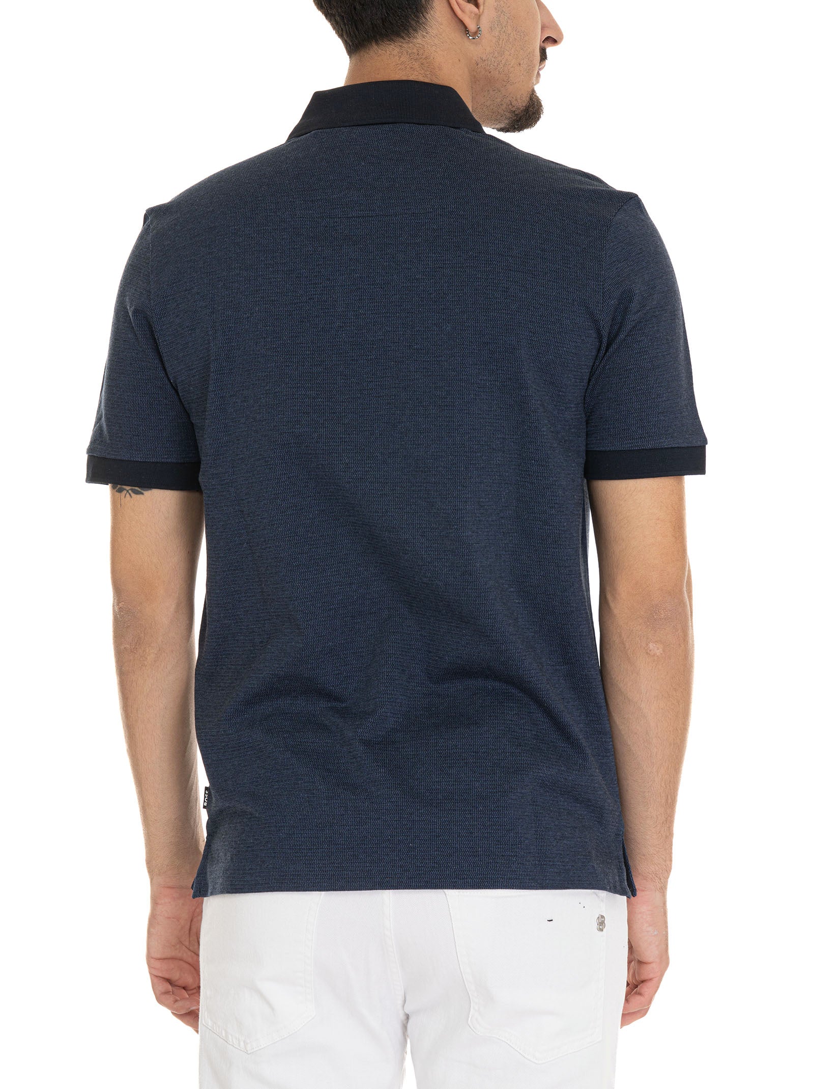 BOSS H-PARLAY432 short-sleeved polo shirt, micro-pattern, contrasting collar and profiles, logo tab, side slits, composition: 100% cotton, line: BOSS.