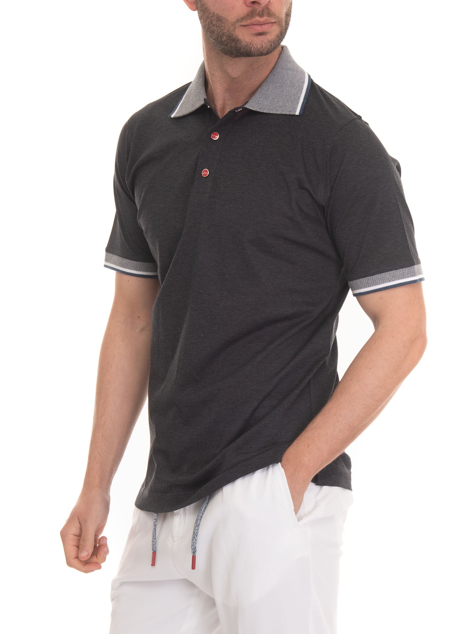 Short sleeve polo shirt, clip closure, collar and cuffs in contrasting colour, 2 side vents with logo, regular fit, composition: 100% cotton, line: KITON.