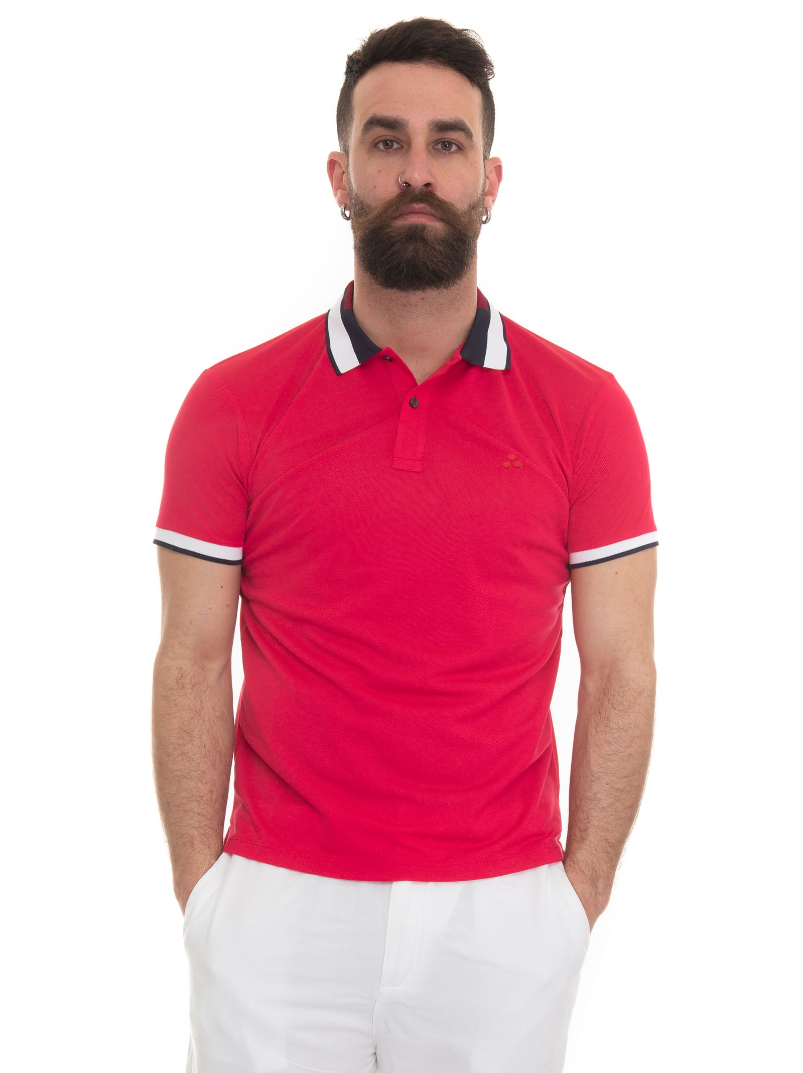 Peuterey PARA short sleeve polo shirt, contrasting collar, contrasting profiles, logo on the chest, side slits, textured fabric, regular fit, composition: 100% polyester, line: PEUTEREY.