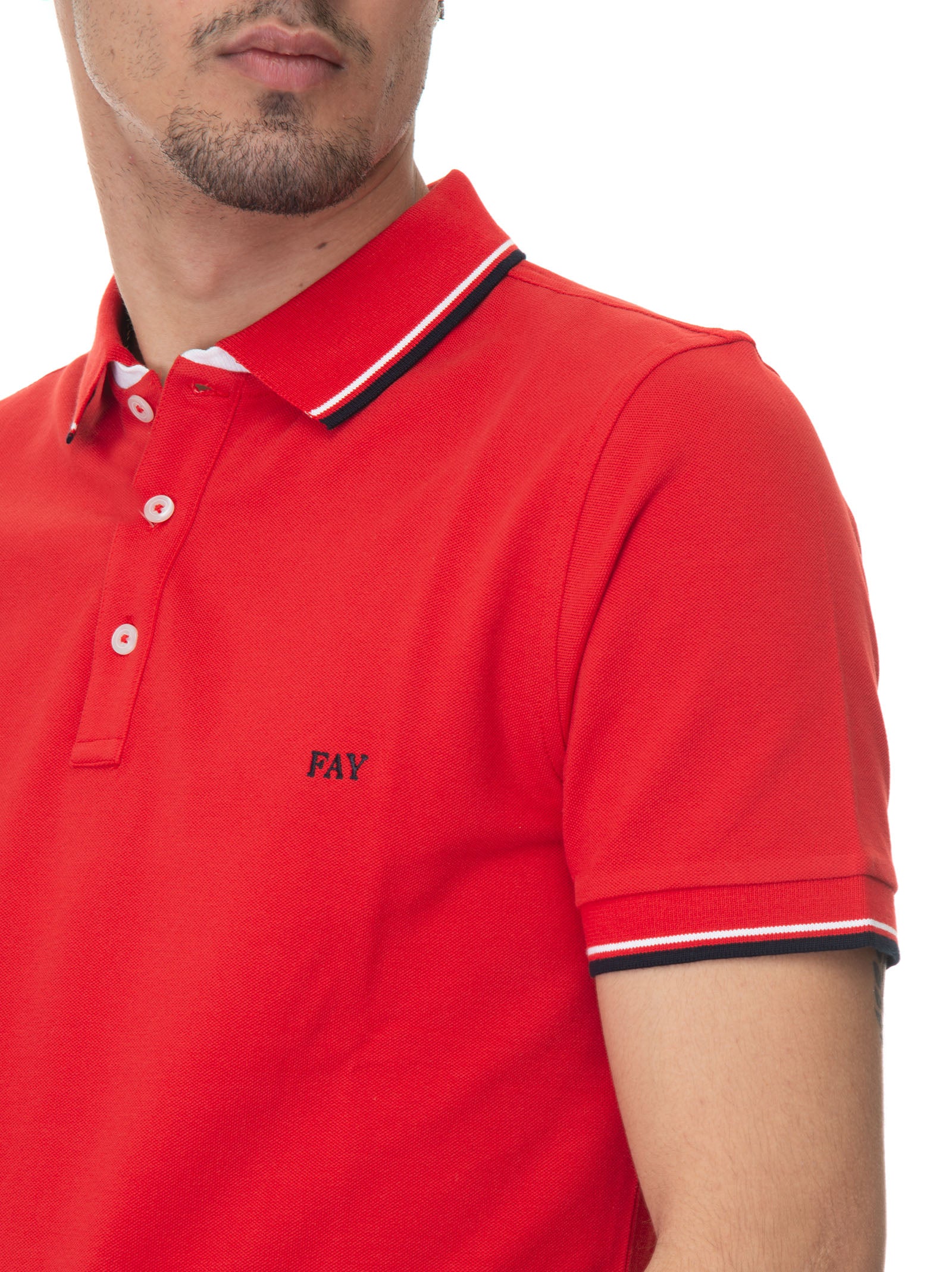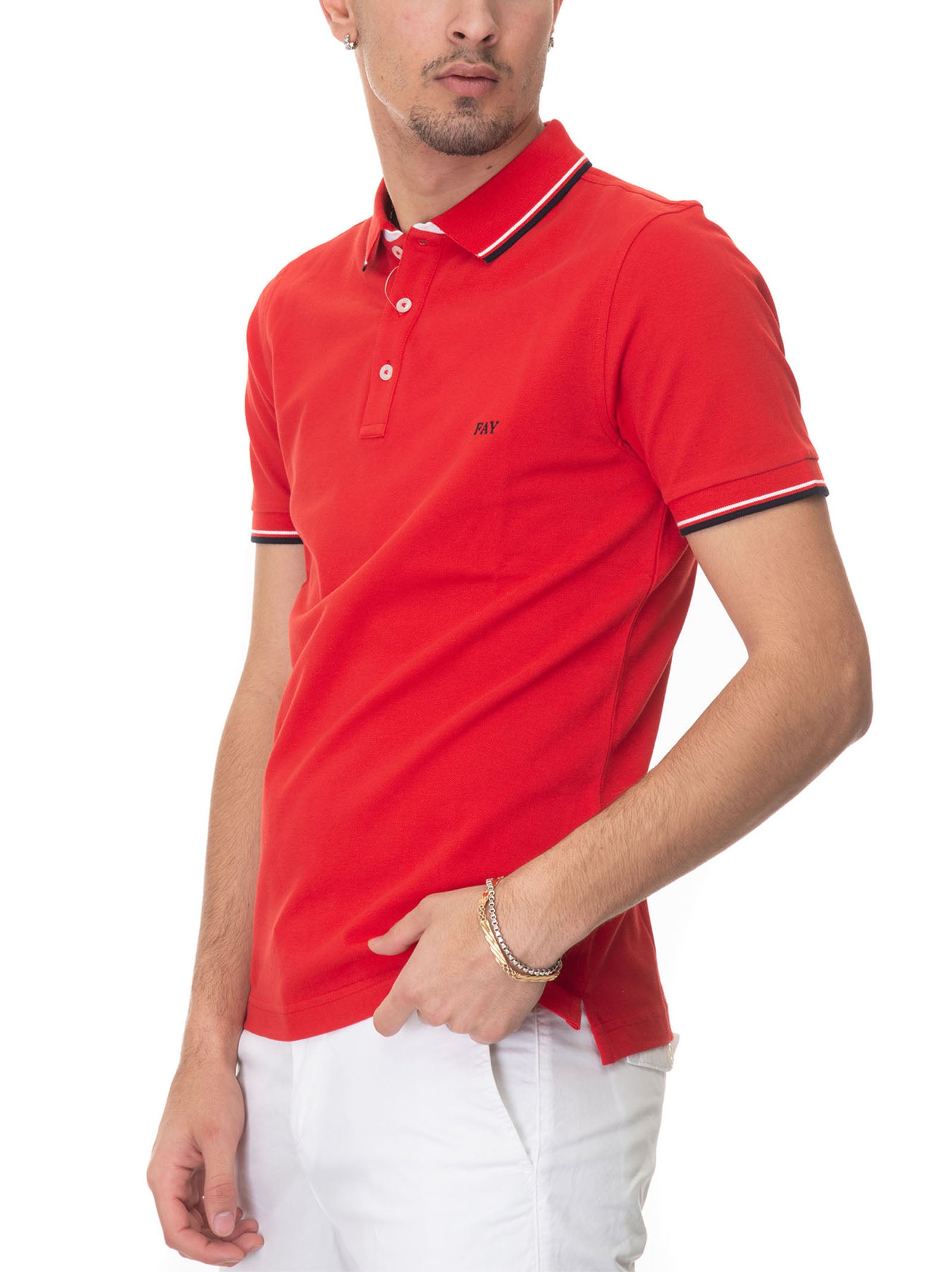 Short sleeve polo, contrasting profiles, logo on the chest, side slits, textured fabric, slim fit, composition: 97% cotton, 3% elastane, line: FAY.