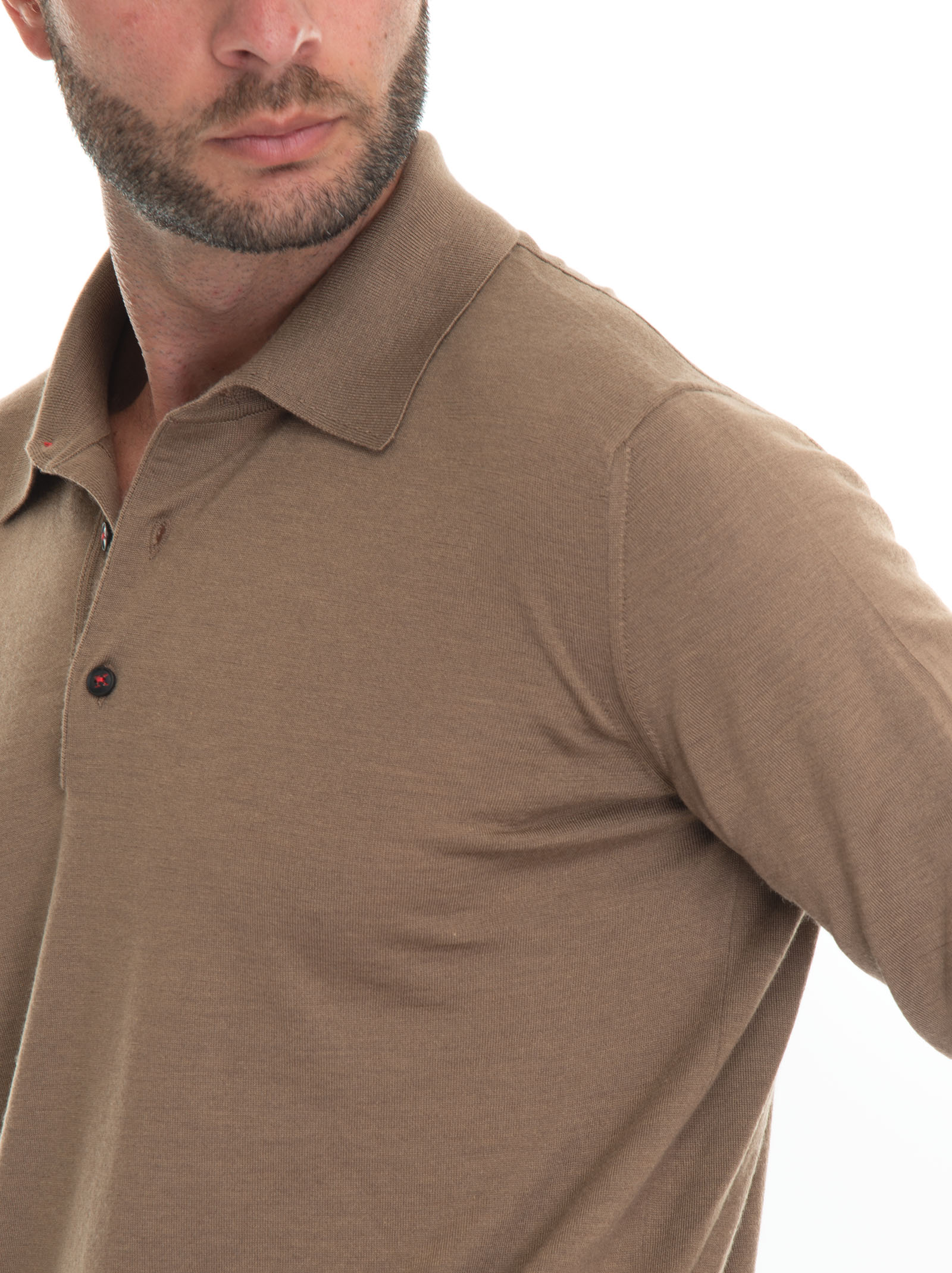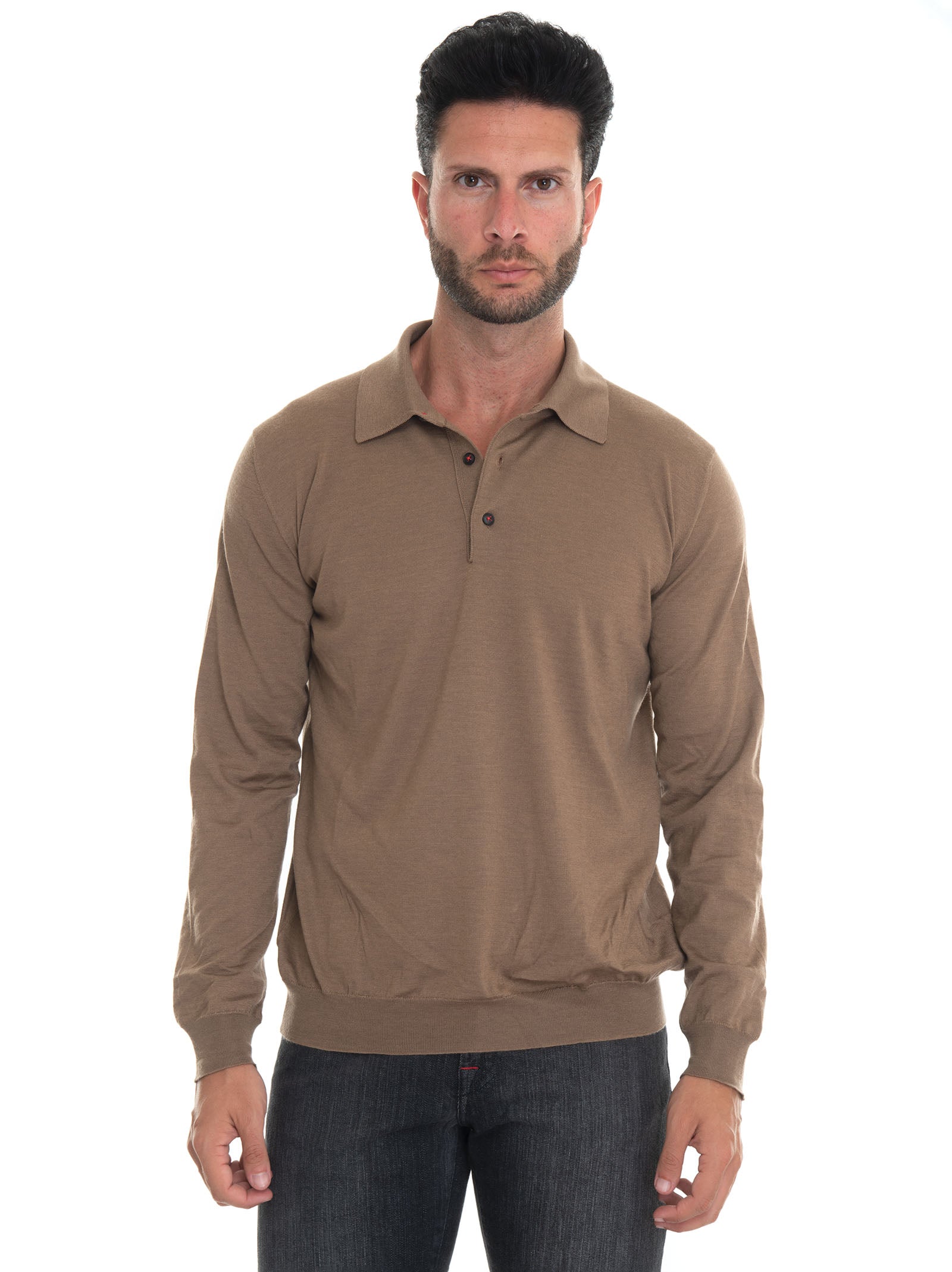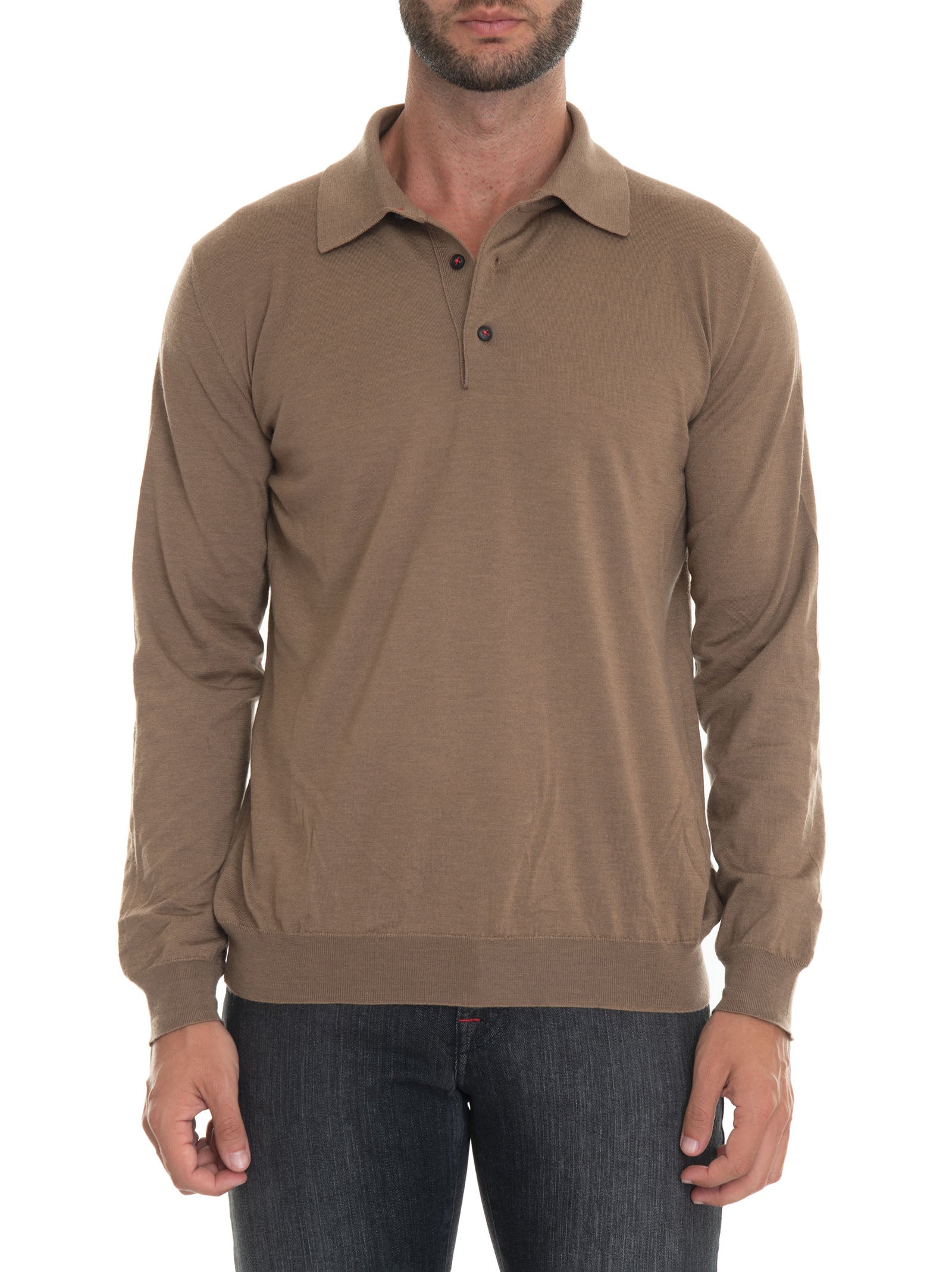 Long sleeve polo shirt, three spherical buttons in contrasting colour, regular fit, composition: 80% cashmere, 20% silk, line: KITON.