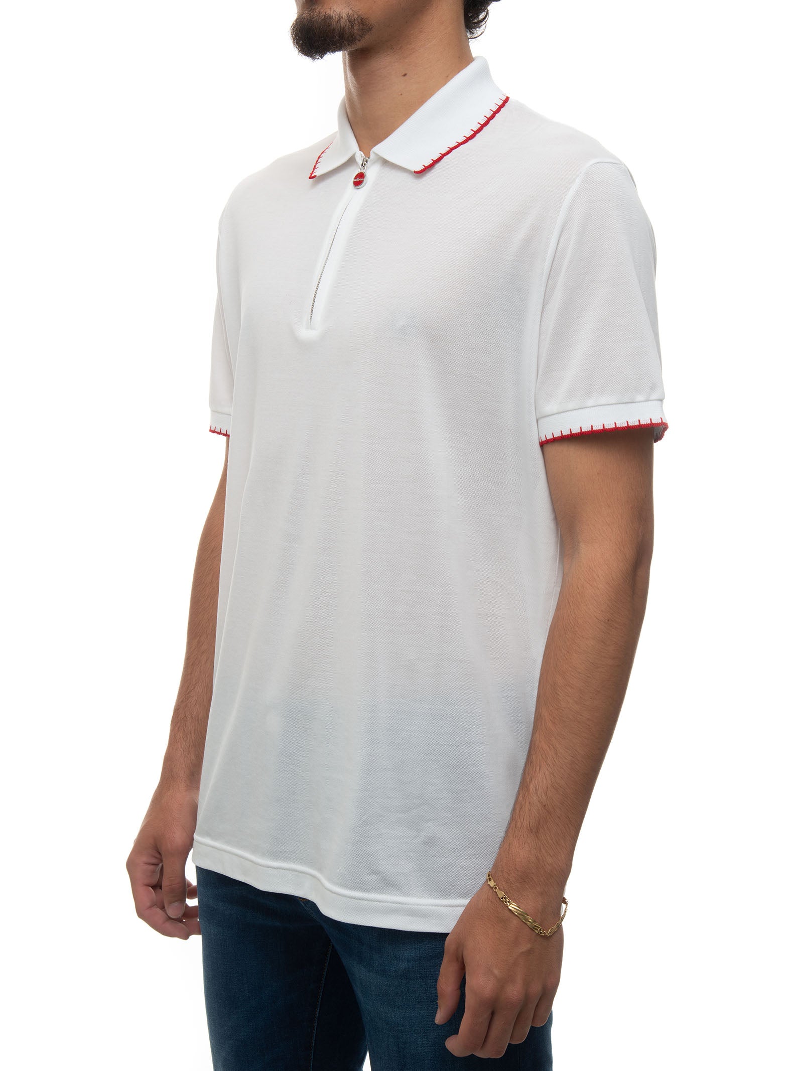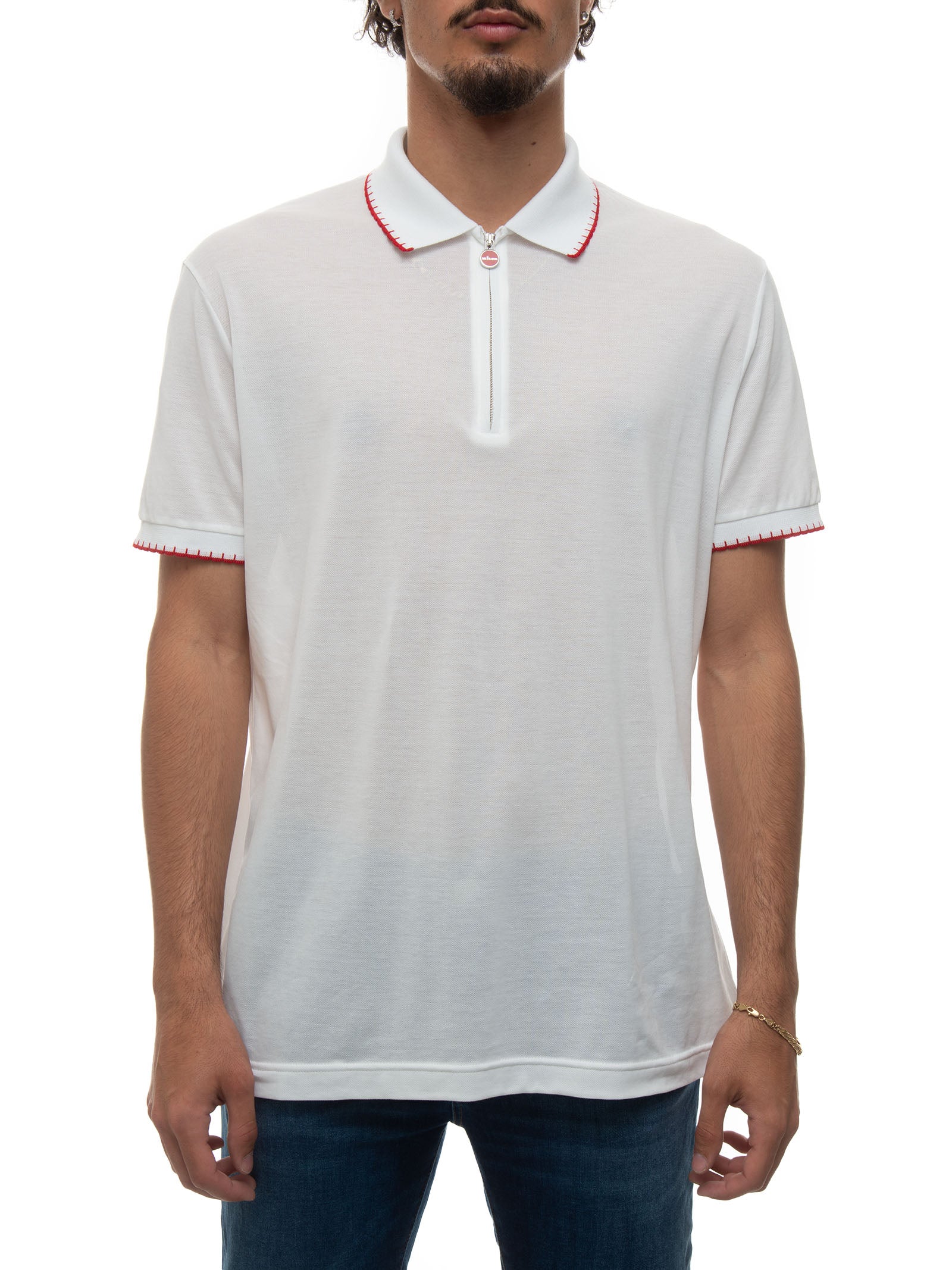 Short sleeve polo, contrasting color details, back logo, front zip, logo slider, pique fabric, regular fit, composition: 100% cotton, line: KITON.