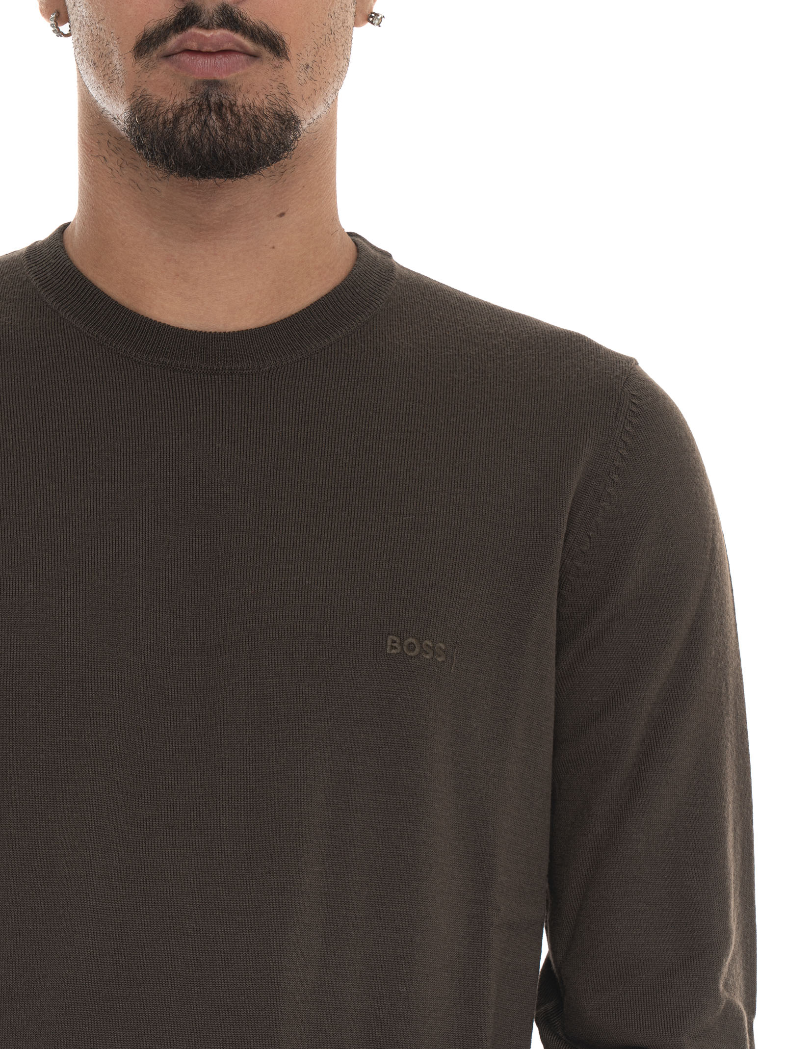 BOSS BOTTO-L crew neck sweater, logo on the chest, solid color, composition: 100% wool, line: BOSS.