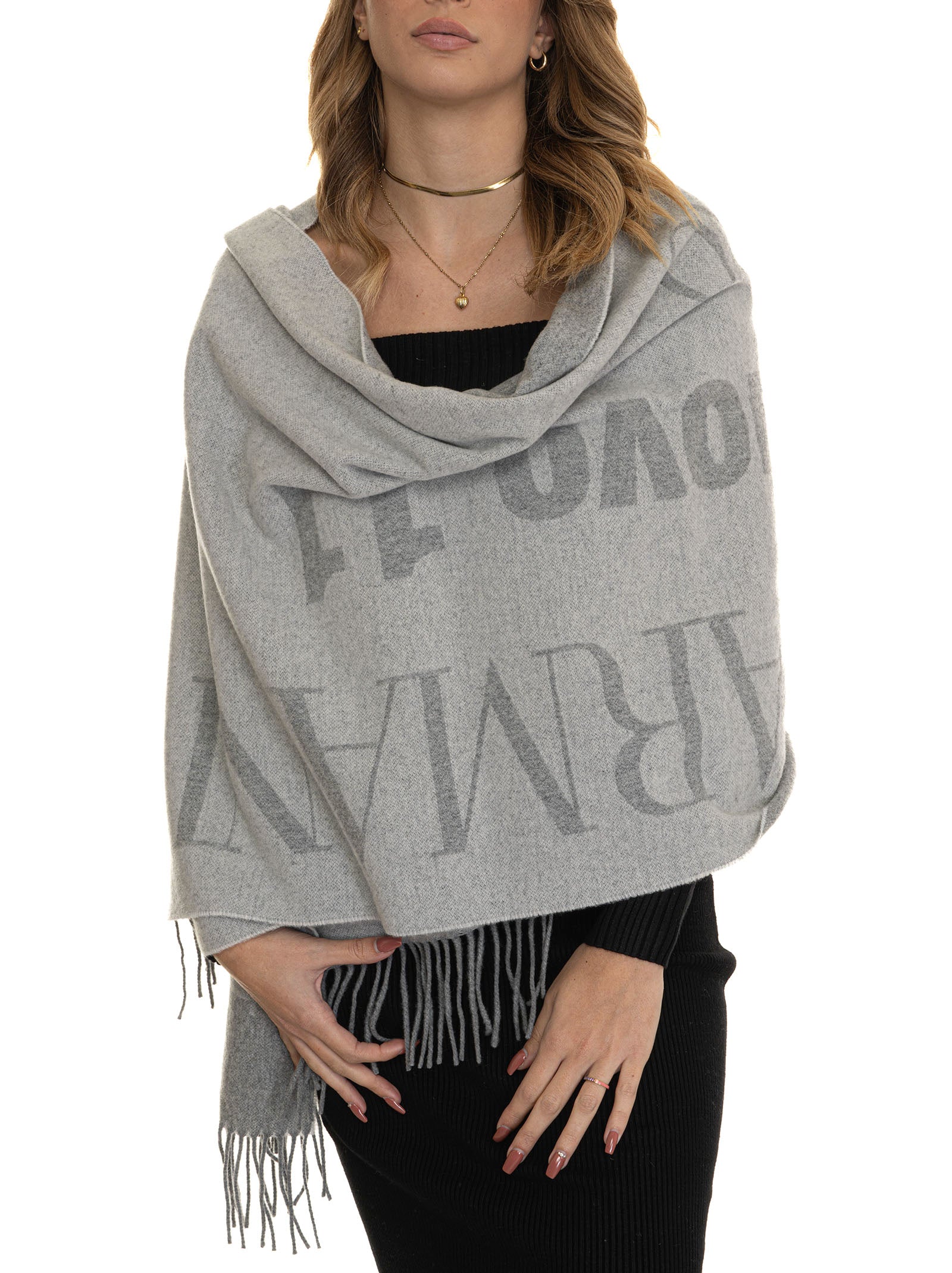 Double-face scarf, fringed profile, logoed, composition: 100% wool, line: EMPORIO ARMANI.