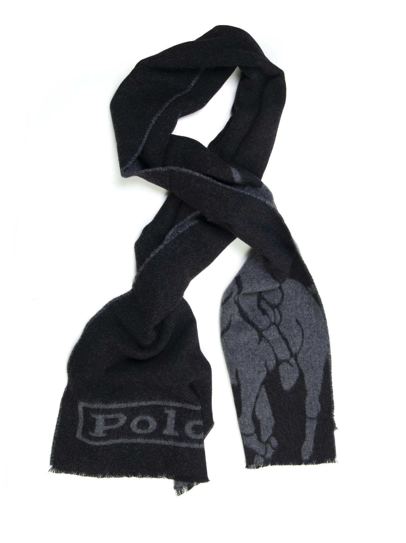 Reversible scarf, maxi logo, composition: 80% wool, 20% nylon, line: RALPH LAUREN.