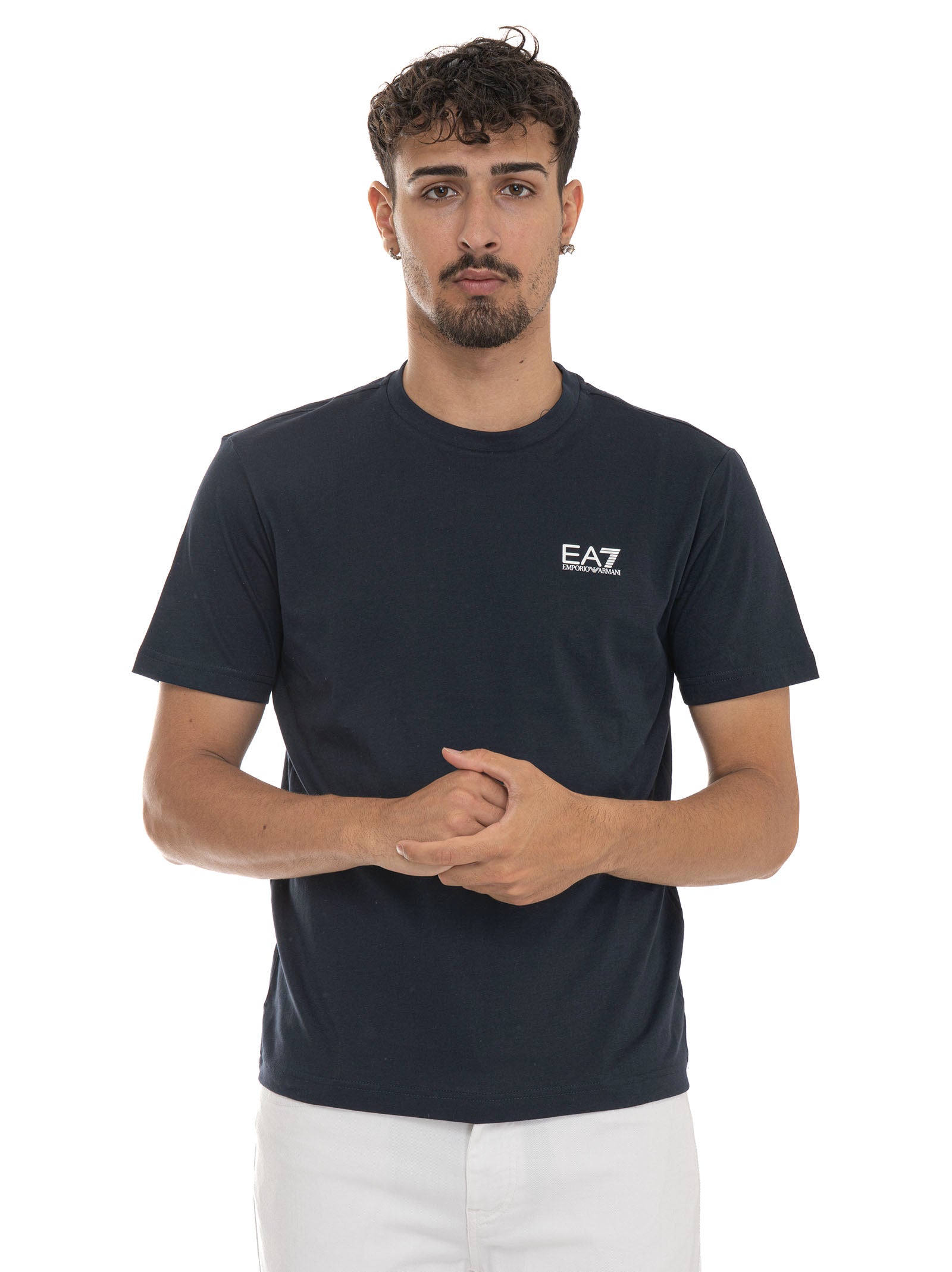 T-shirt, crew neck, short sleeve, side logo, composition: 100% cotton, line: EA7.