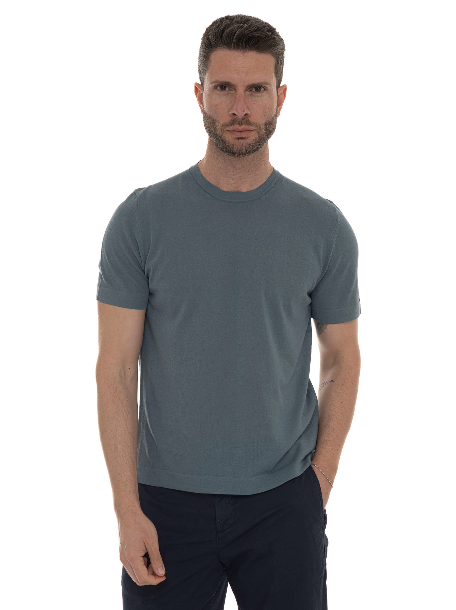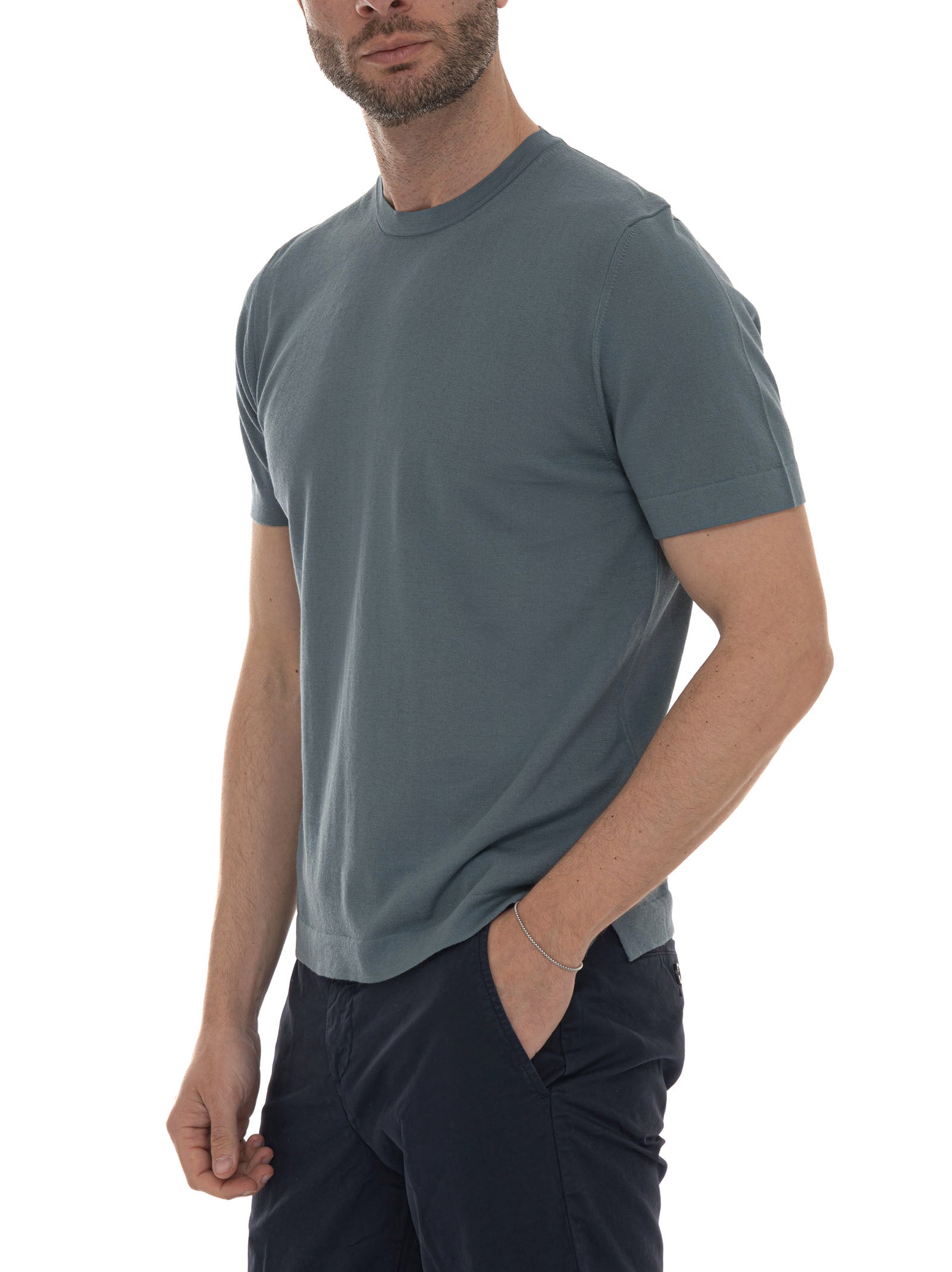Hindustrie COTTONCREPE jersey T-shirt, side slits, ultra-light fabric, solid color, composition: 100% cotton, line: HINDUSTRIE.