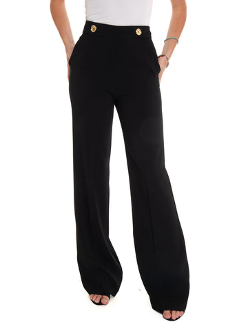 Palazzo trousers, cady fabric, straight leg, plain bustier, button applications, side pockets, regular fit, composition:...